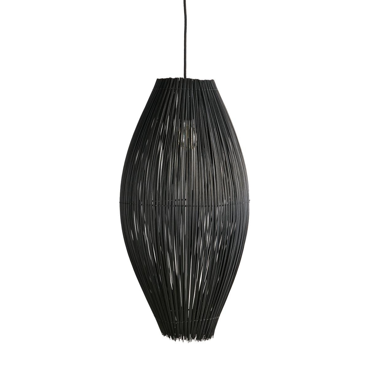 Besonders dekorative Pendelleuchte aus Bambusstäben. Die Form erinnert an eine Fischreuse. Das Licht wird durch die feinen Schlitze dezent gebrochen und sorgt für ein stimmungsvolles Ambiente.