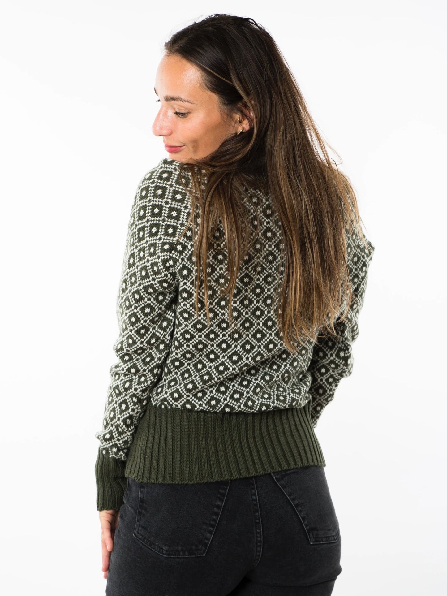 Modischer handgestrickter Pullover mit großem Rollkragen aus reiner Merinowolle mit einem attraktiven Strickmuster im Norweger Look. Die Wolle atmet und hilft, die Körpertemperatur zu regeln. Mit breiten Rippenbündchen am Saum und Ärmelabschluss gearbeitet. Ein absolutes Highlight für die kühlen Wintertage.