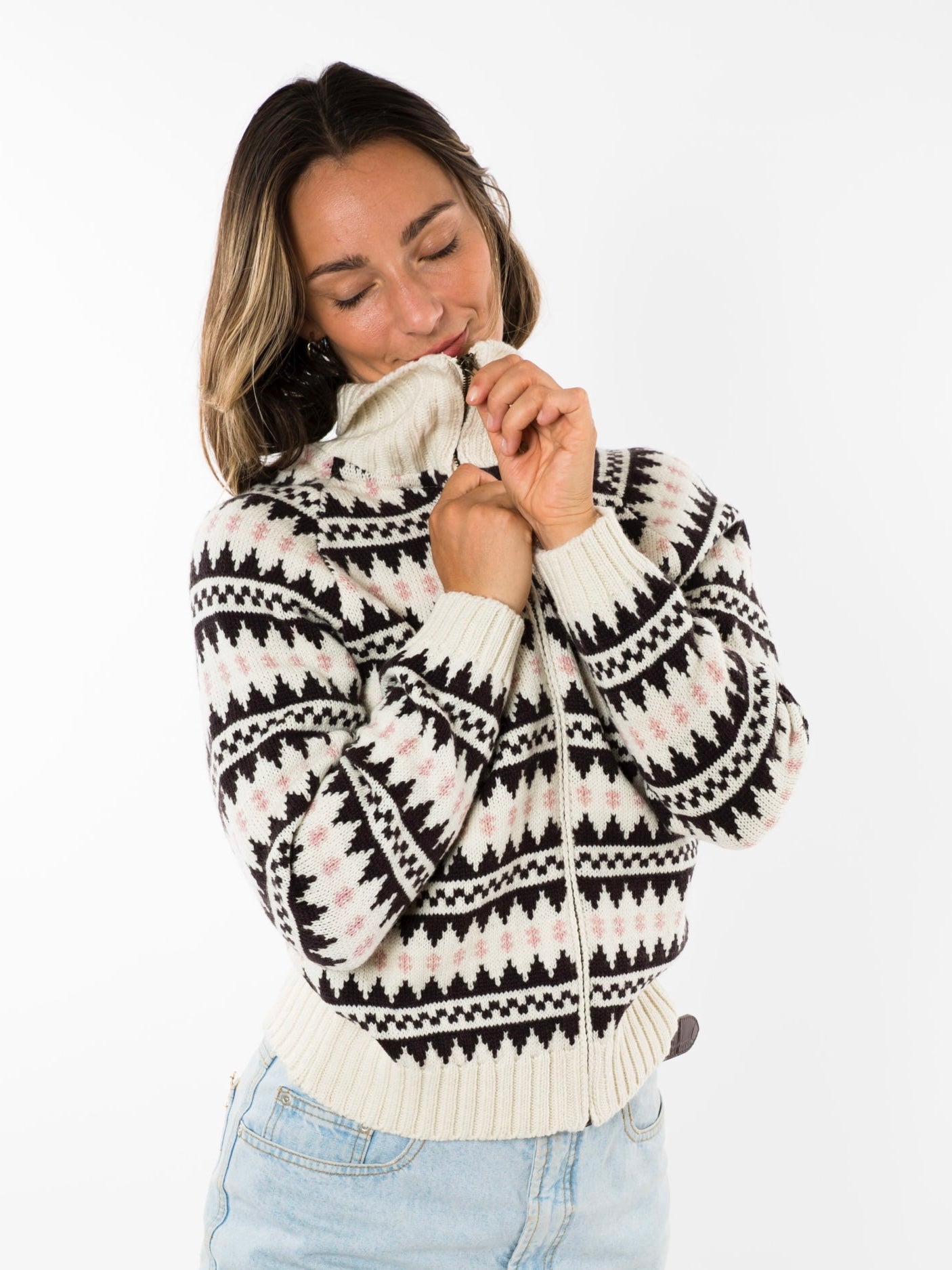 Modische Norweger Strickjacke mit Reißverschluss aus reiner Merinowolle. Die Wolle atmet und hilft, die Körpertemperatur zu regeln. Mit farblich abgesetztem Rippenbündchen am Kragen, Saum und Ärmelabschluss gearbeitet. Ein absolutes Highlight für die kühlen Wintertage.