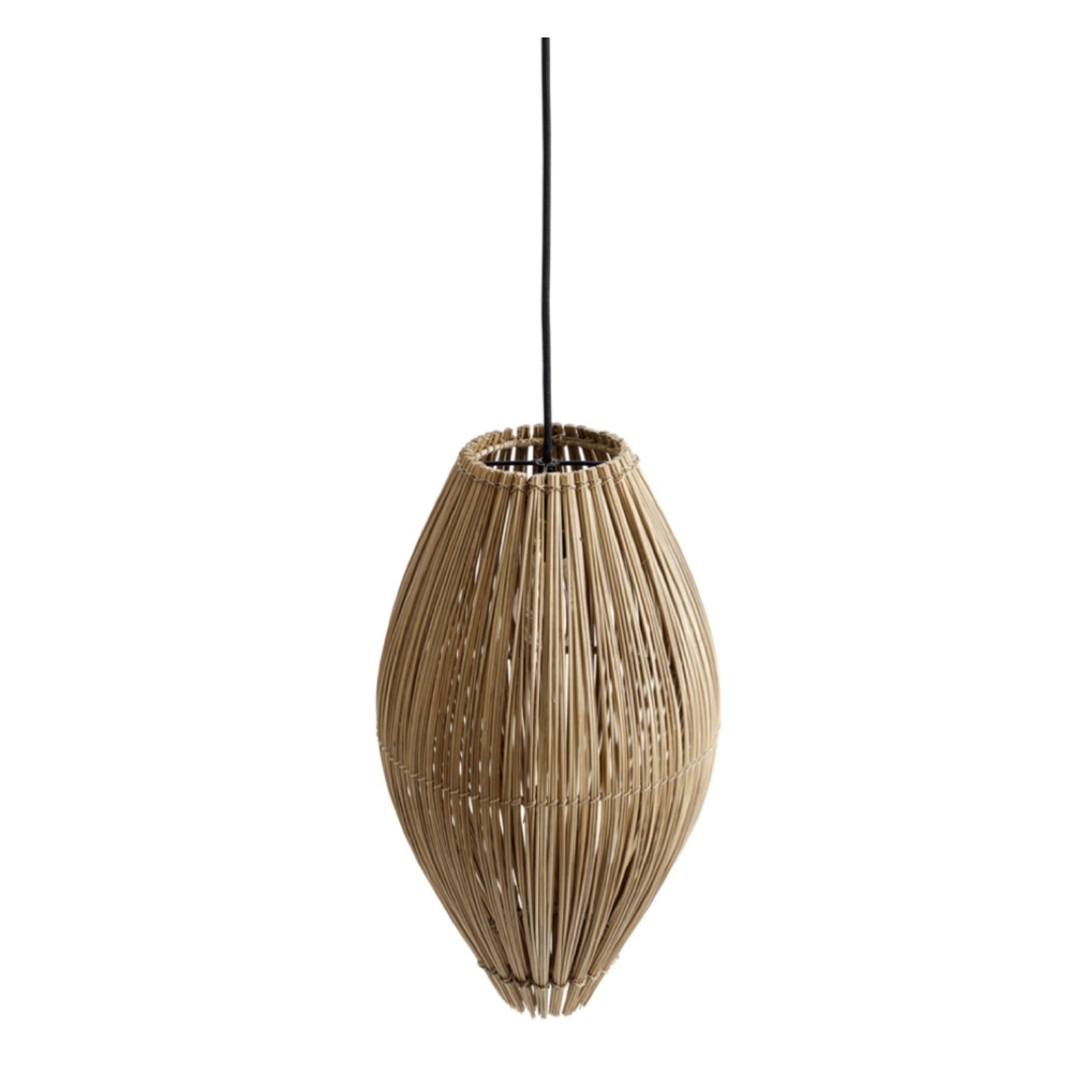 Besonders dekorative Pendelleuchte aus Bambusstäben. Die Form erinnert an eine Fischreuse. Das Licht wird durch die feinen Schlitze dezent gebrochen und sorgt für ein stimmungsvolles Ambiente.