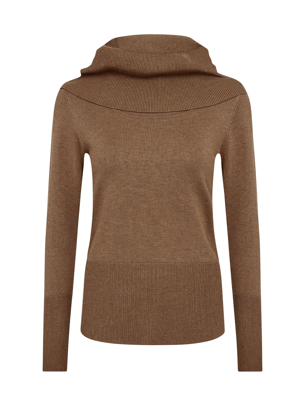 Dieser modern geschnittene Pullover aus einer weichen Viskose/Nylonqualität gehört in jeden Kleiderschrank. Schmale Form mit weitem Rollkragen in feinem Rippenstrick. Breite Rippenbündchen am Saum- und Ärmelabschluss.