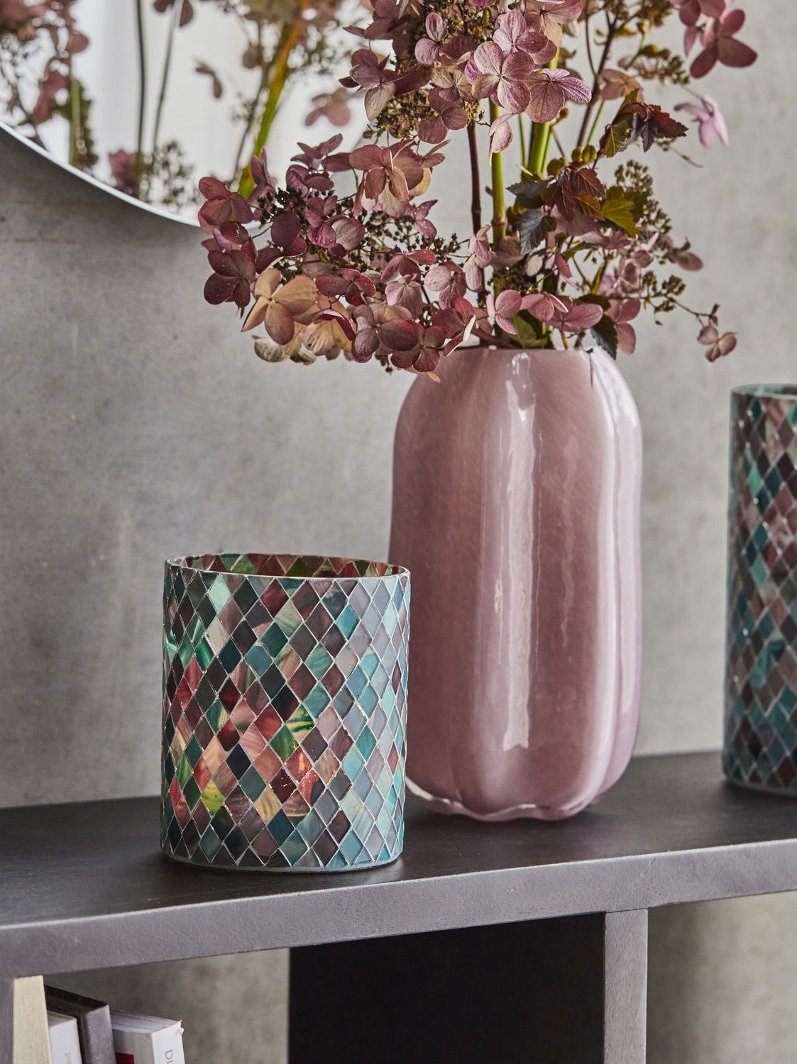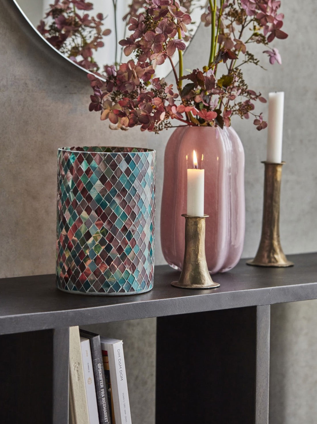 Mit diesem Teelichthalter von House Doctor erhält dein Wohnzimmer dezente Farbe und jede Menge Charme. Das braune und grüne Mosaikmuster bildet einen wunderbaren Kontrast zu anderen Materialien und schlichterer Deko. Stell den Teelichthalter zwischen anderen Elementen, wo das Mosaikmuster zur Geltung kommt oder alleine auf die Fensterbank. Manchmal erfordert es nur ein wenig Farbe, damit der Raum wie verwandelt aussieht.