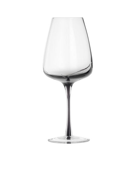Formschönes, mundgeblasenes Weißweinglas der Serie Smoke aus rauchgrau gefärbtem Glas. Andere Gläser aus dieser Serie werden ebenfalls angeboten.