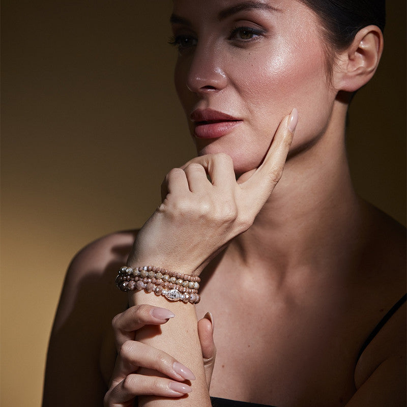 Dekoratives Armband mit 4 Bändchen aus farblich abgestimmten Glasperlen. Jedes Teil ein Unikat.