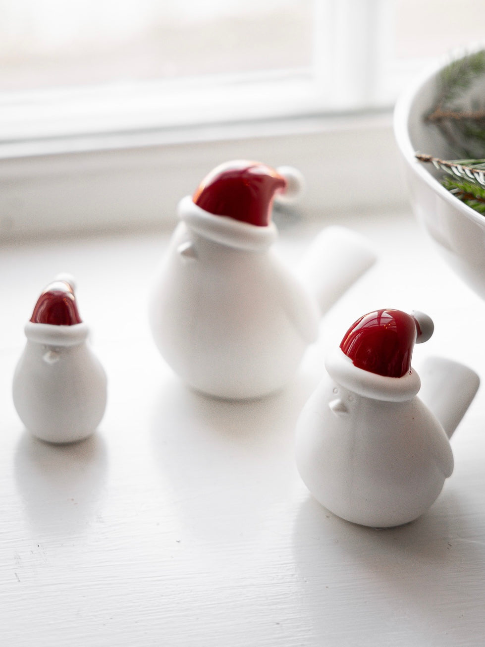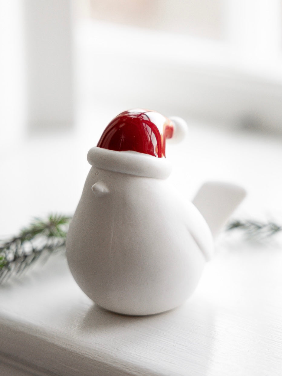 Deko-Vogel aus Keramik zur Tischdekoration oder auf dem Regal in 3 Größen. Eine perfekte Dekoration für den Kerzenhalter Lidatorp. Die farbigen Mützen sind glasiert.
