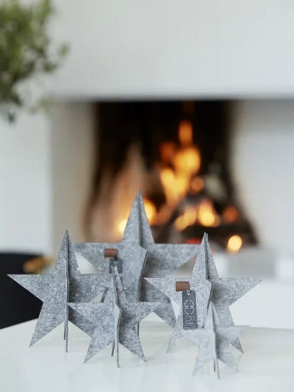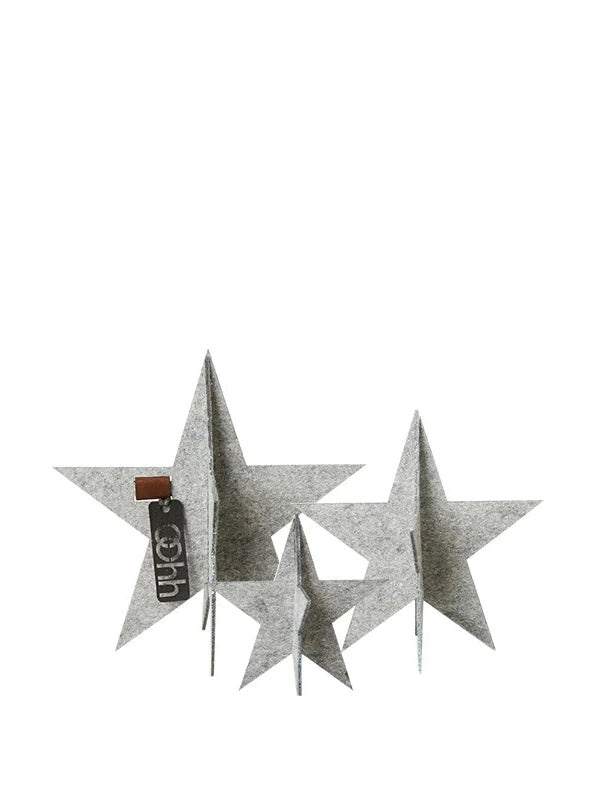 Schöne Sterne als Tischdekoration aus recyceltem Plastik in Filzoptik, aus der Oohh Kollektion von Luebech Living. Das Set besteht aus 3 Sternen in unterschiedlichen Größen.