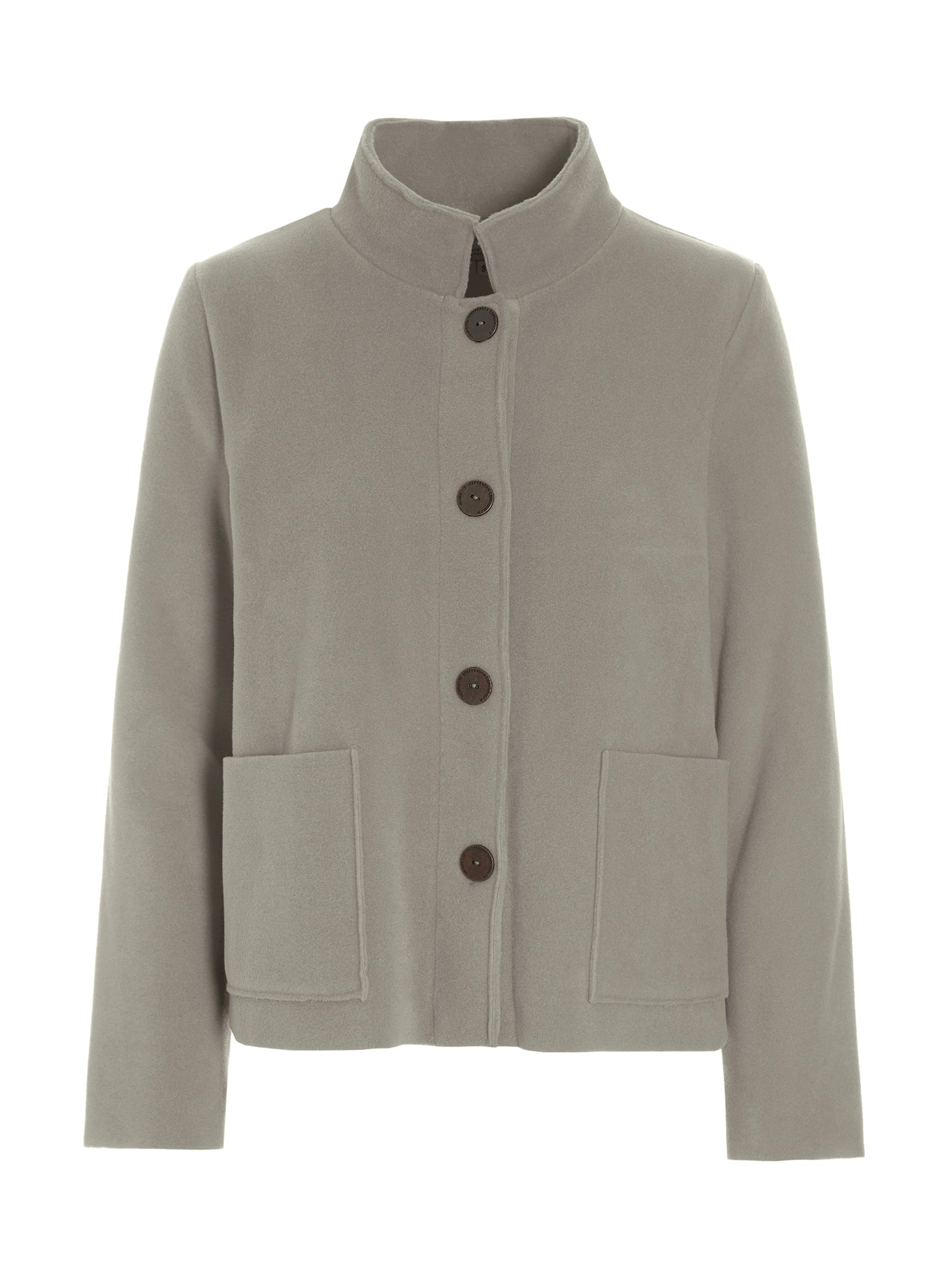 Kurze kastige Fleecejacke mit Stehkragen und Knopfleiste im sportlich eleganten Design. Mit aufgesetzten Taschen gearbeitet.