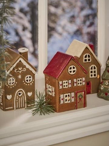 Dekoratives Keramikhaus für Teelichter. Liebevolle Verarbeitung, besonders schön als Ensemble.