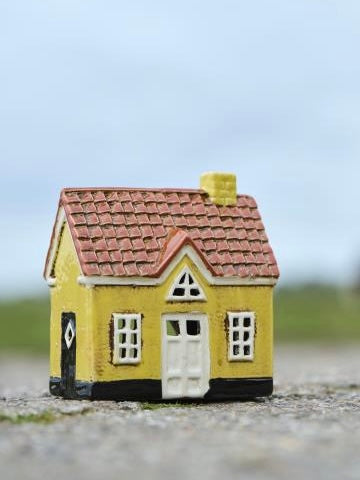 Haus für Teelicht My hometown gelb mit weißer Tür