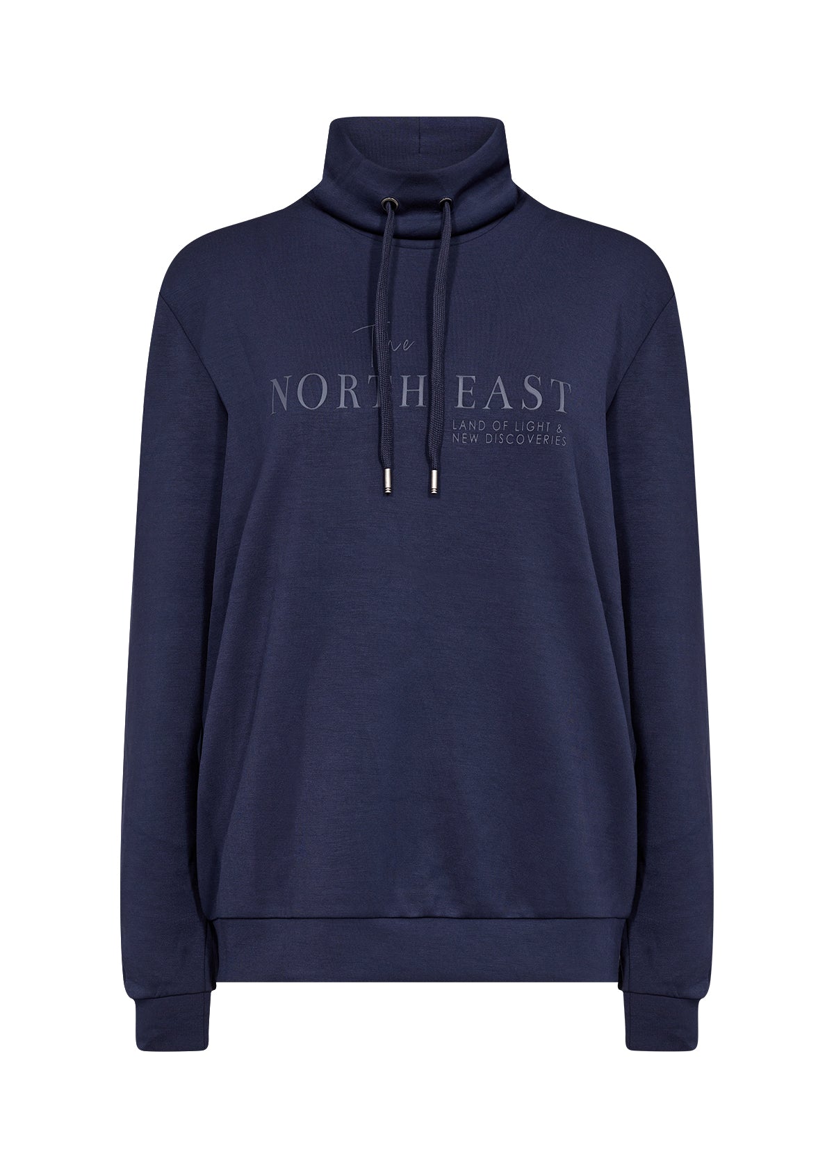 Gepflegtes Langarmshirt im Sweatshirt Look. Mit weitem Stehkragen und Bindebändern. Ton-in-Ton Frontdruck. Aus einer leichten Modalmischung gefertigt. Bündchenabschluss am Saum und an den Ärmeln.