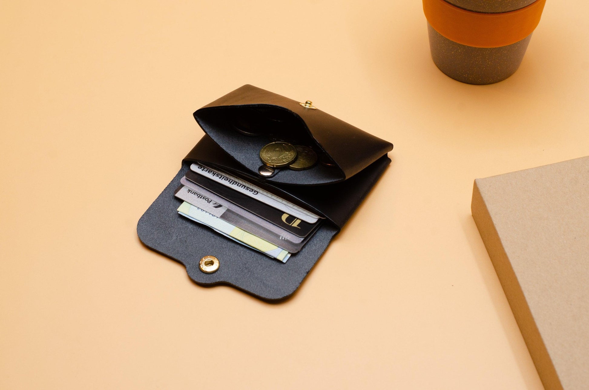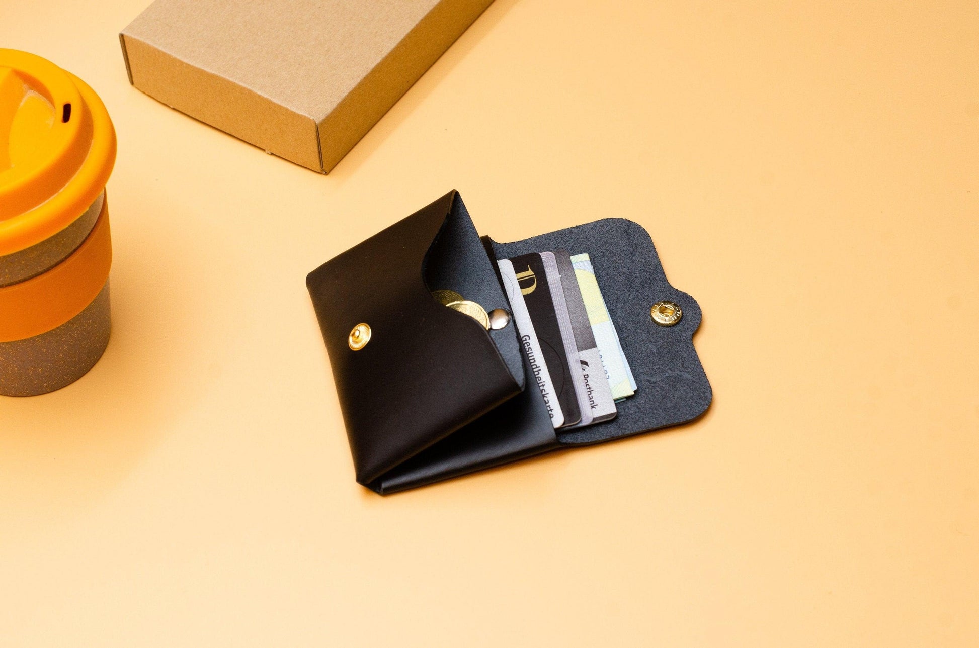 Minimalistischer Geldbeutel aus Leder, Schwarz