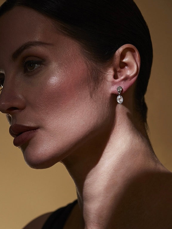Dekorative Ohrhänger aus silberfarbenem Messing in ovaler Form mit 2 eingefassten Glassteinen.