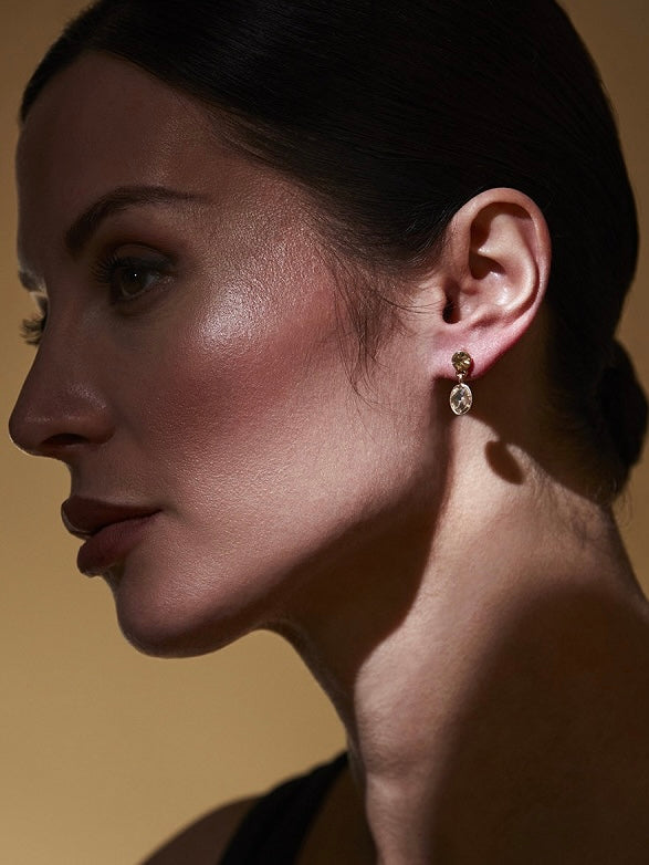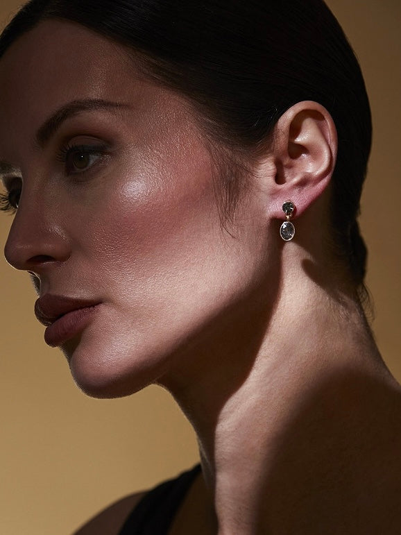 Dekorative Ohrhänger aus Messing in ovaler Form mit 2 eingefassten Glassteinen.