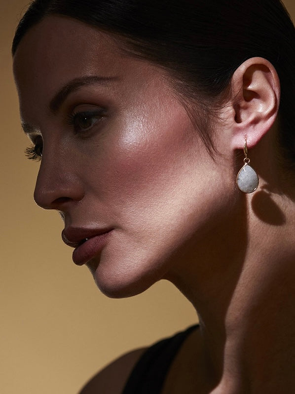 Dekorative Ohrhänger in Tropfenform mit einem eingefassten Naturstein.
