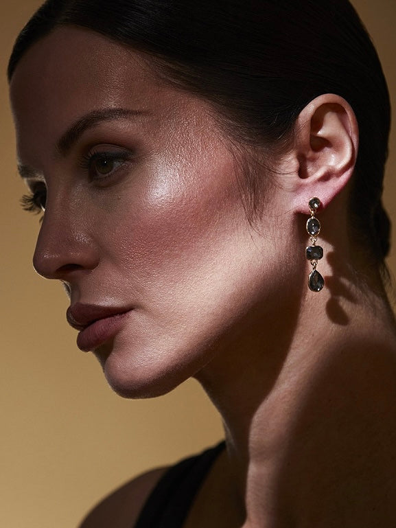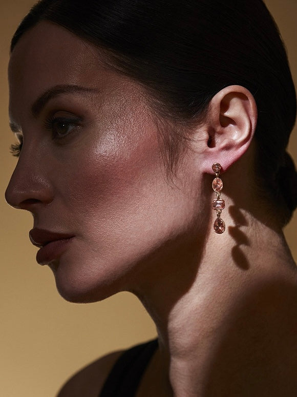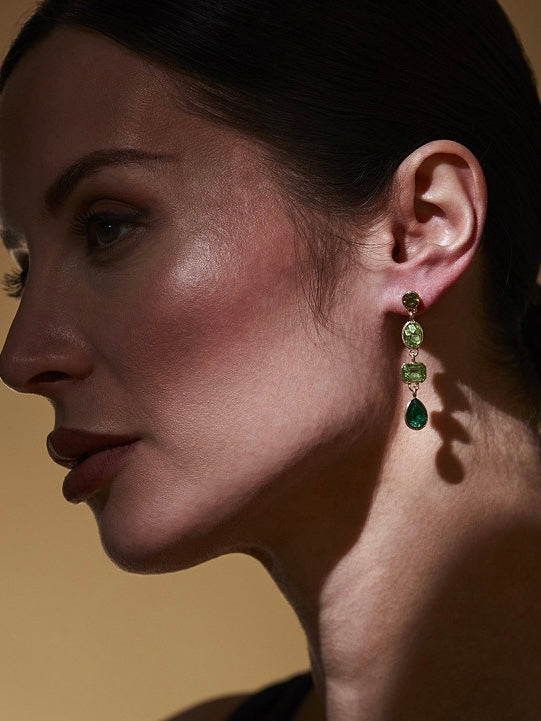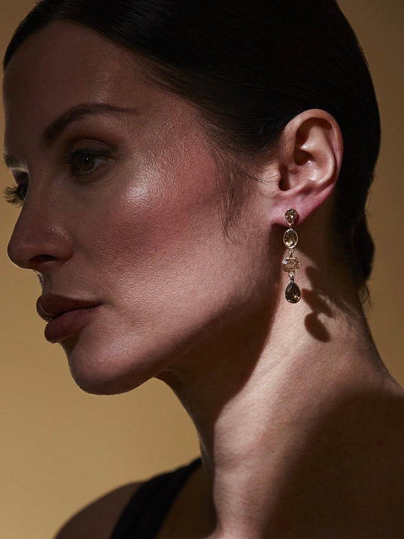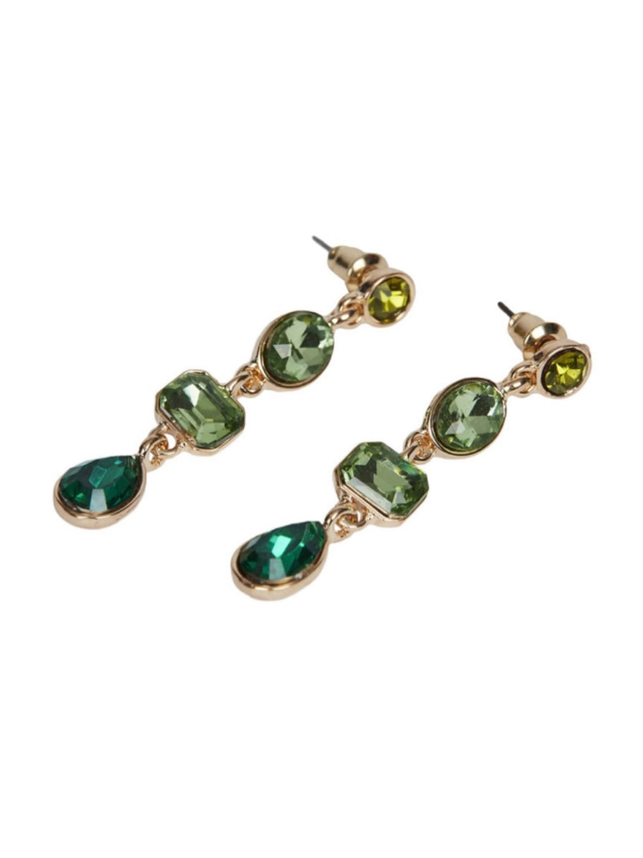 Dekorative Ohrhänger aus Messing mit einem Gliederanhänger mit eingefassten Glassteinen.
