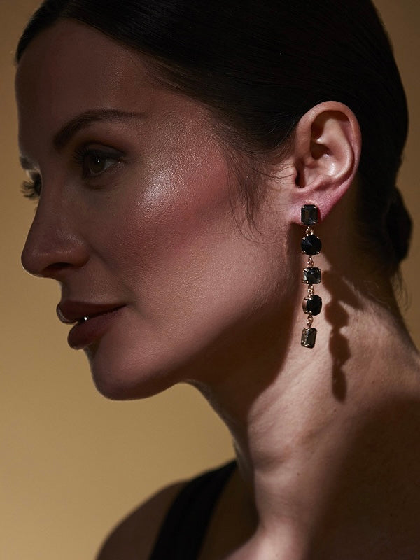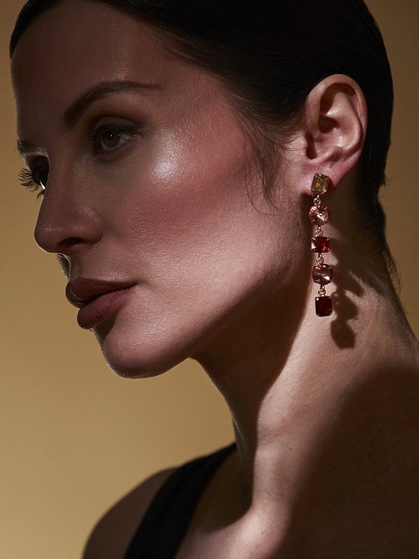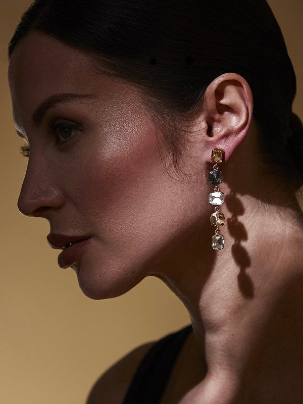 Dekorative Ohrhänger aus Messing mit einem Gliederanhänger mit eingefassten Glassteinen.