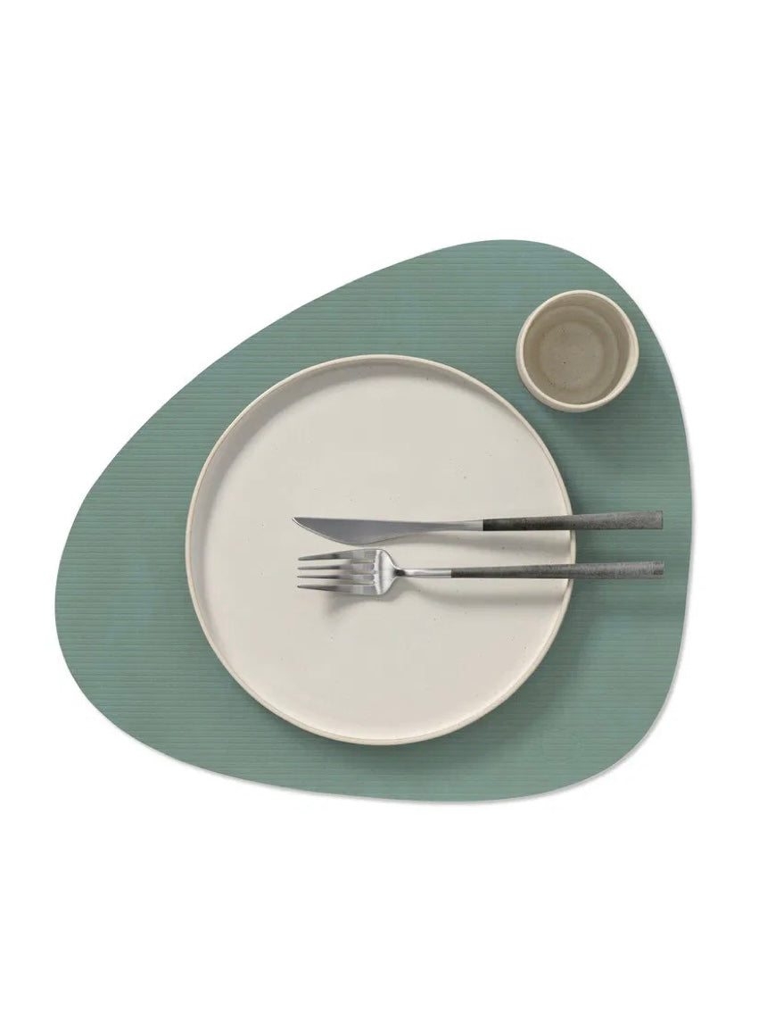 Dieses Platzset ist aufwändig aus recyceltem Leder und Naturkautschuk gefertigt. Die Oberfläche ist leicht mit einem feuchten Tuch zu reinigen. Die ausgefallene Form und die geriffelte Cordstruktur setzen einen besonderen Akzent.