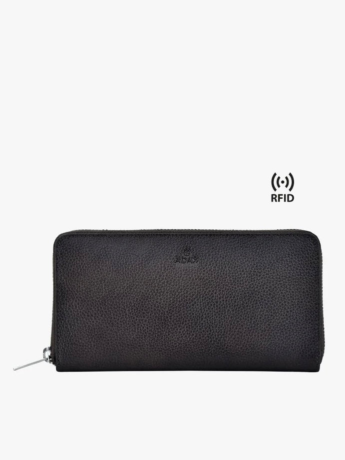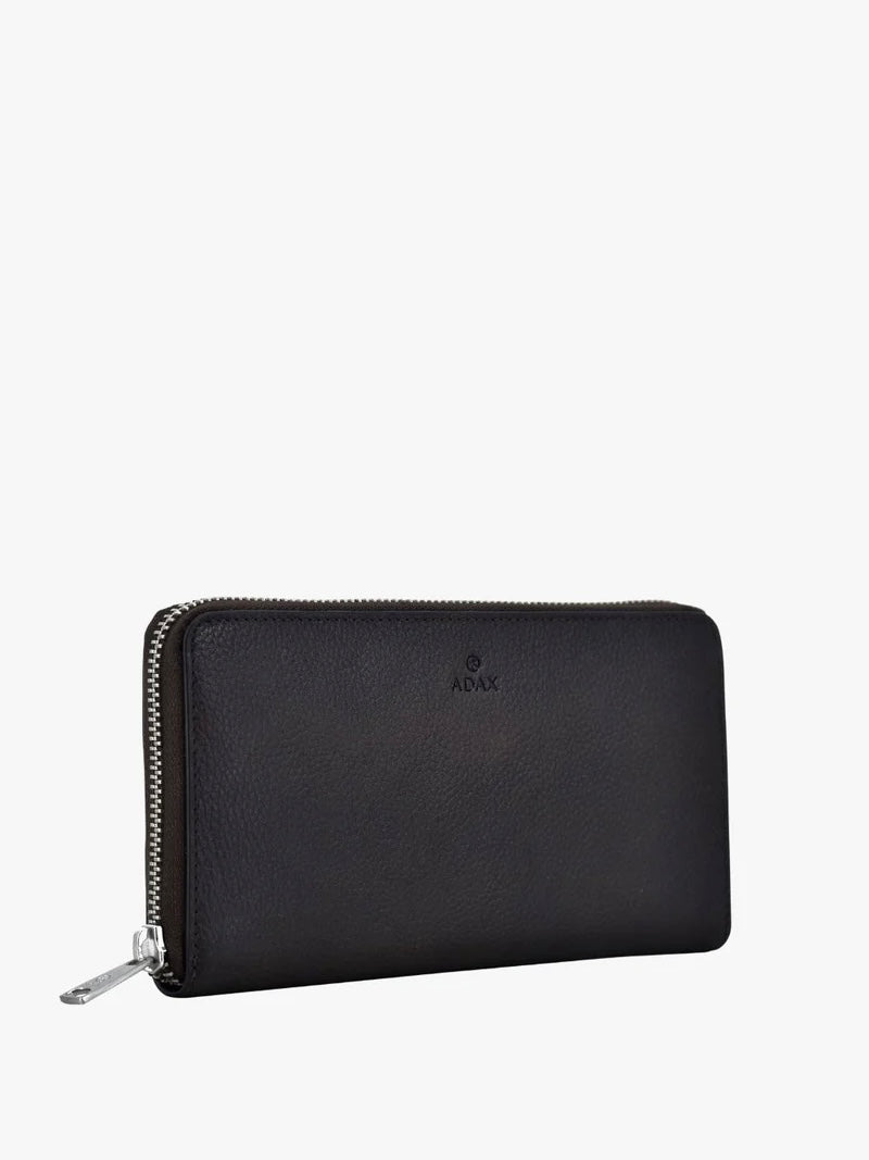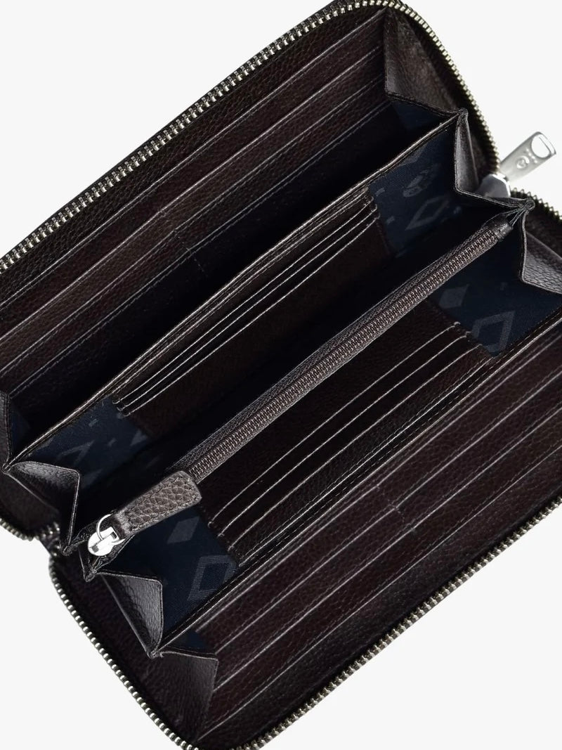 Dieses Portemonnaie besticht durch seine Großzügigkeit. Es hat 2 Fächer für Scheine und Belege, welche durch das mittels Reißverschluss zu schließende Kleingeldfach getrennt sind. Steckplätze für 18 Karten und sogar ein Handy passt hinein. Gegen RFID- Auslesung geschützt.
