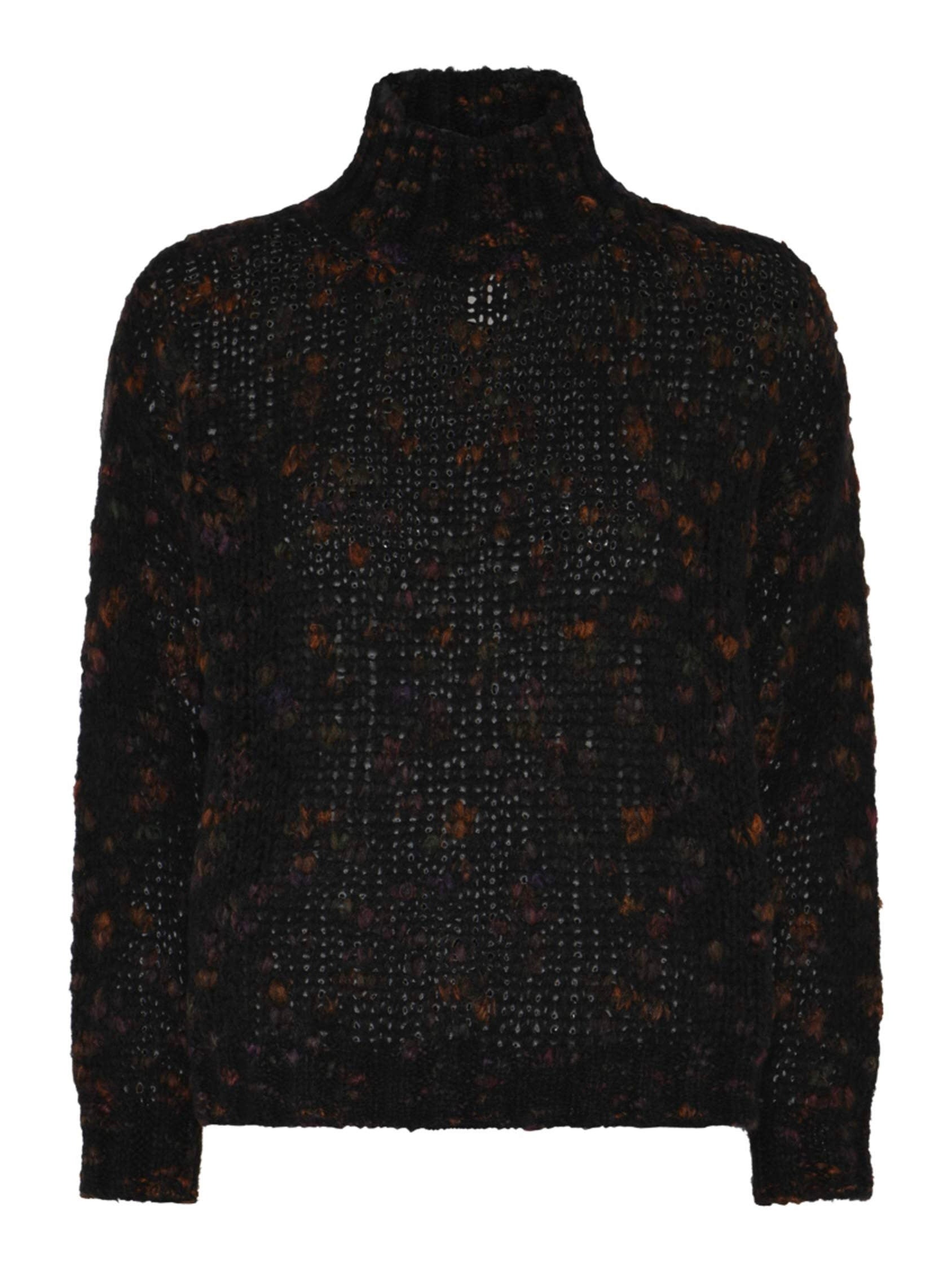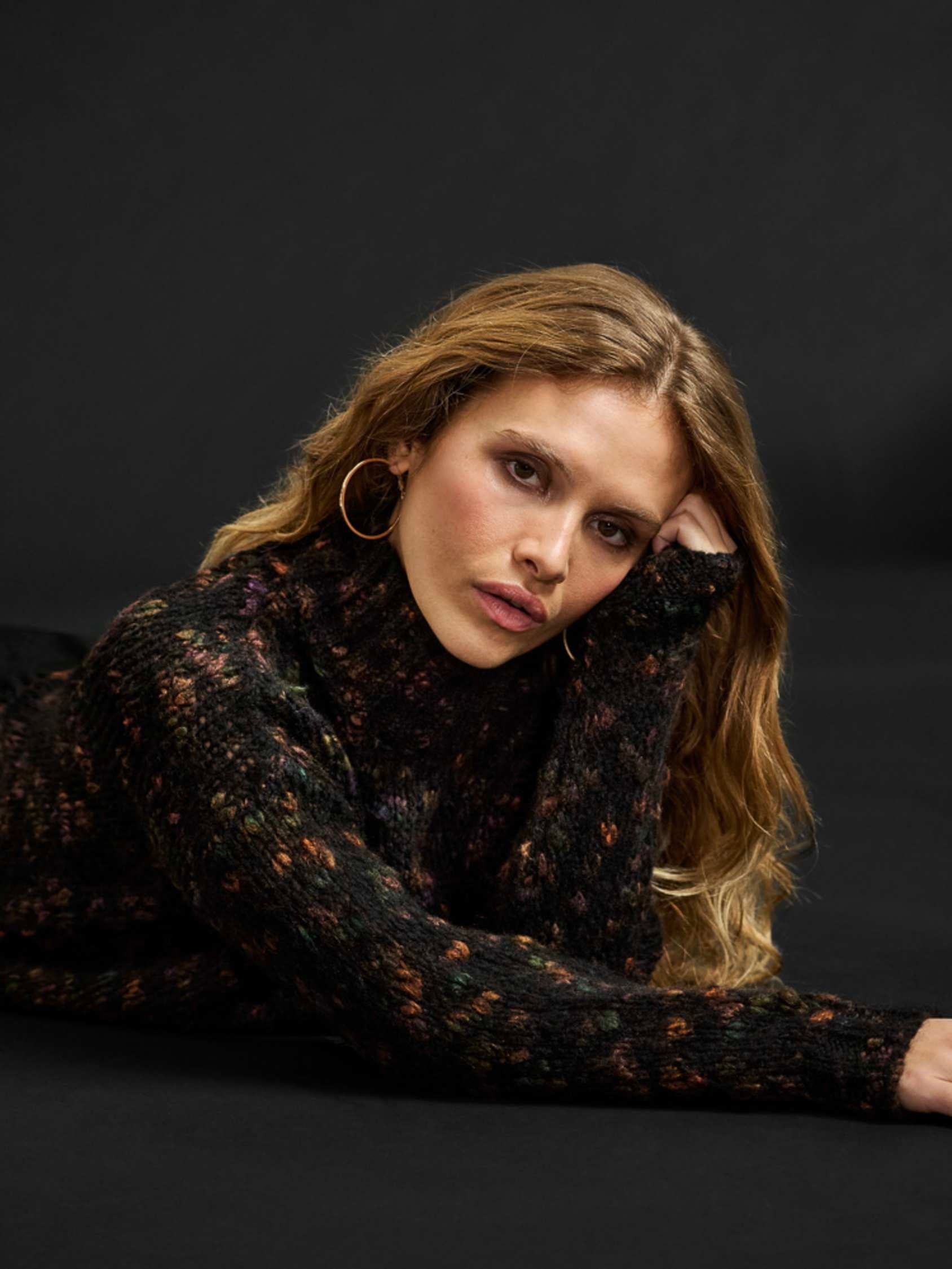 Leger geschnittener Pullover im mehrfarbigen Bouclé Garn. Mit hohem Stehkragen gearbeitet. Relaxed fit mit überschnittenen Ärmeln. Gerader Saum mit lockerem Rippenbund. Angenehm weiche Qualität für jede Jahreszeit.