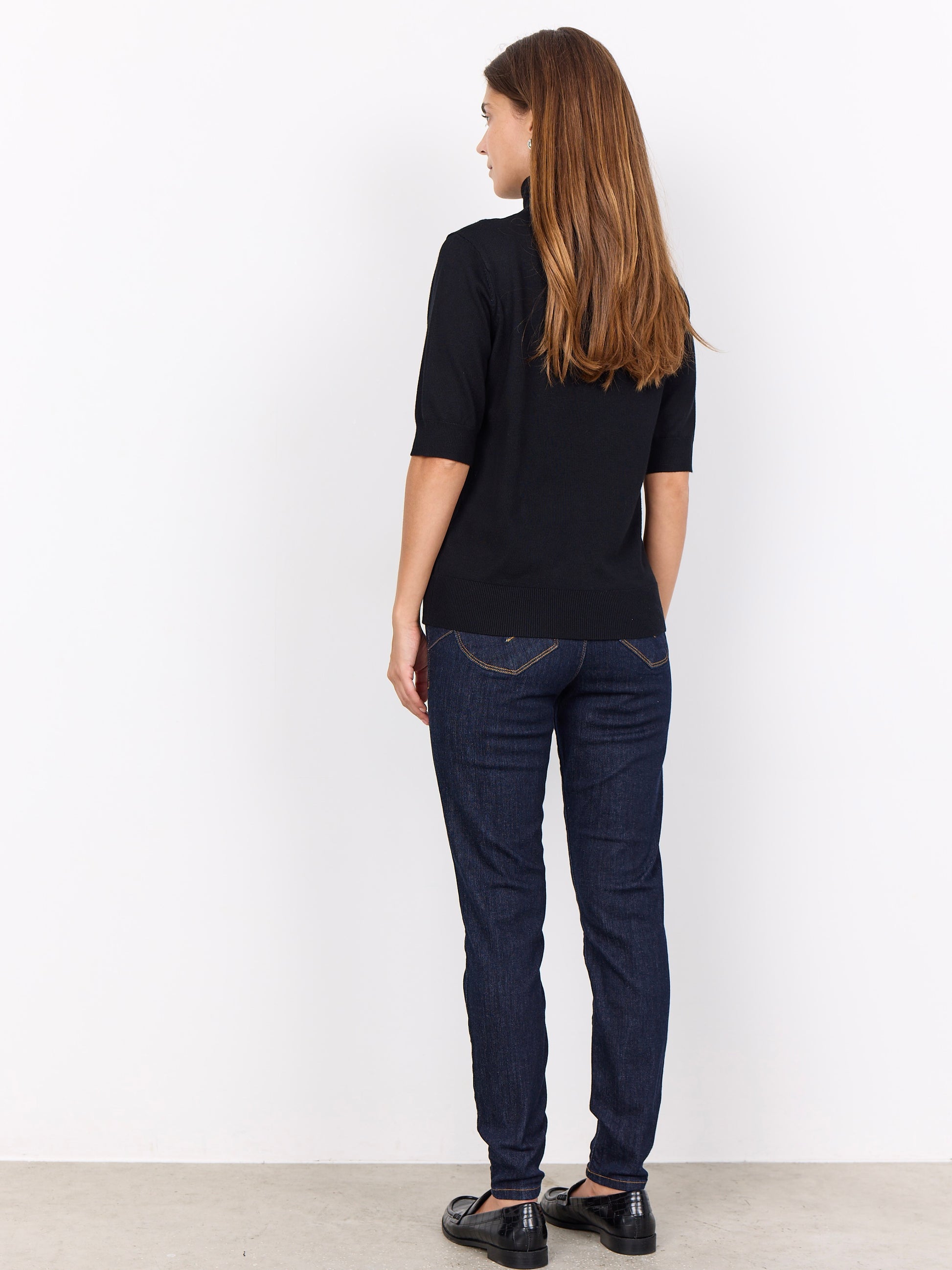 Schlichter Rollkragenpullover mit halben Ärmeln aus einer weichen Viskose/Nylonmischung. Sowohl für die Freizeit als auch für das Büro geeignet.