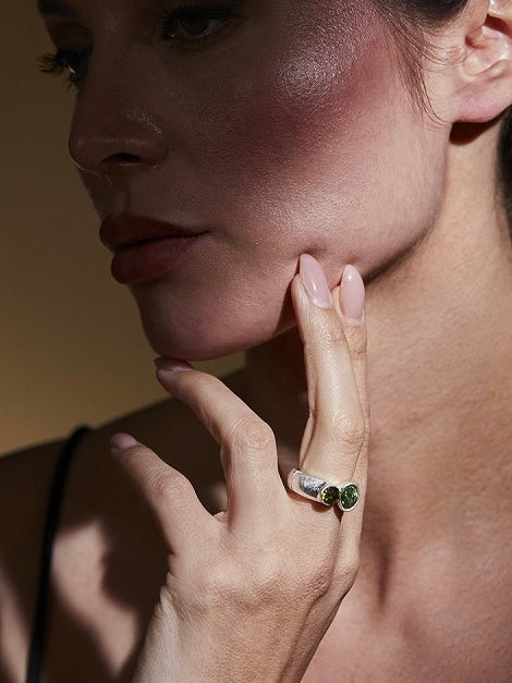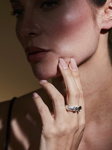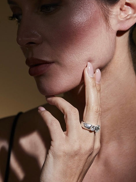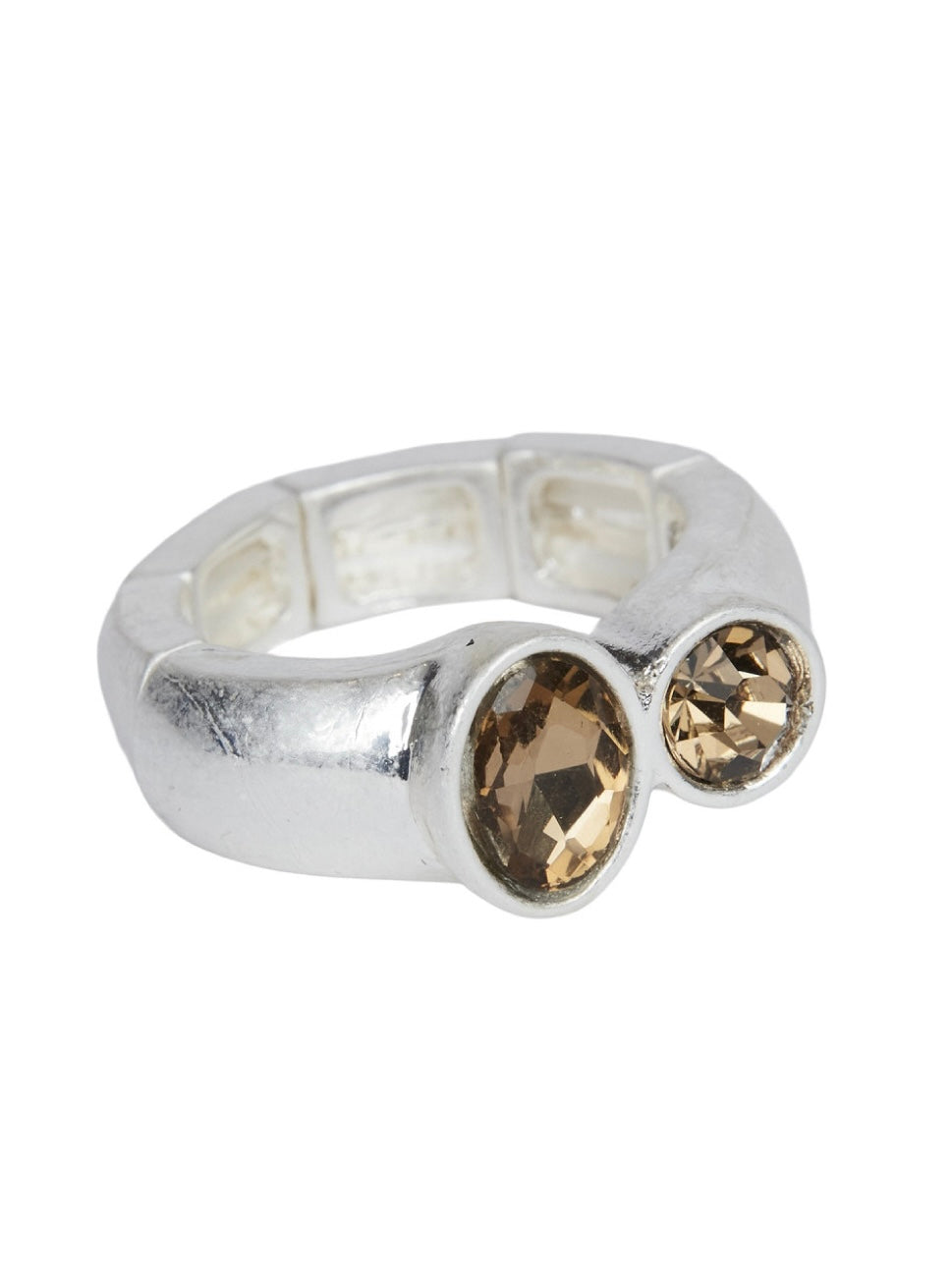 Dieser Ring in matter Optik mit 2 dekorativen Glassteinen ist ein modisches Statement. Der Ring ist in elastischer Form gearbeitet, wodurch er für viele Größen passt. Ein zeitloser Ring, der auch als Geschenk dienen kann.