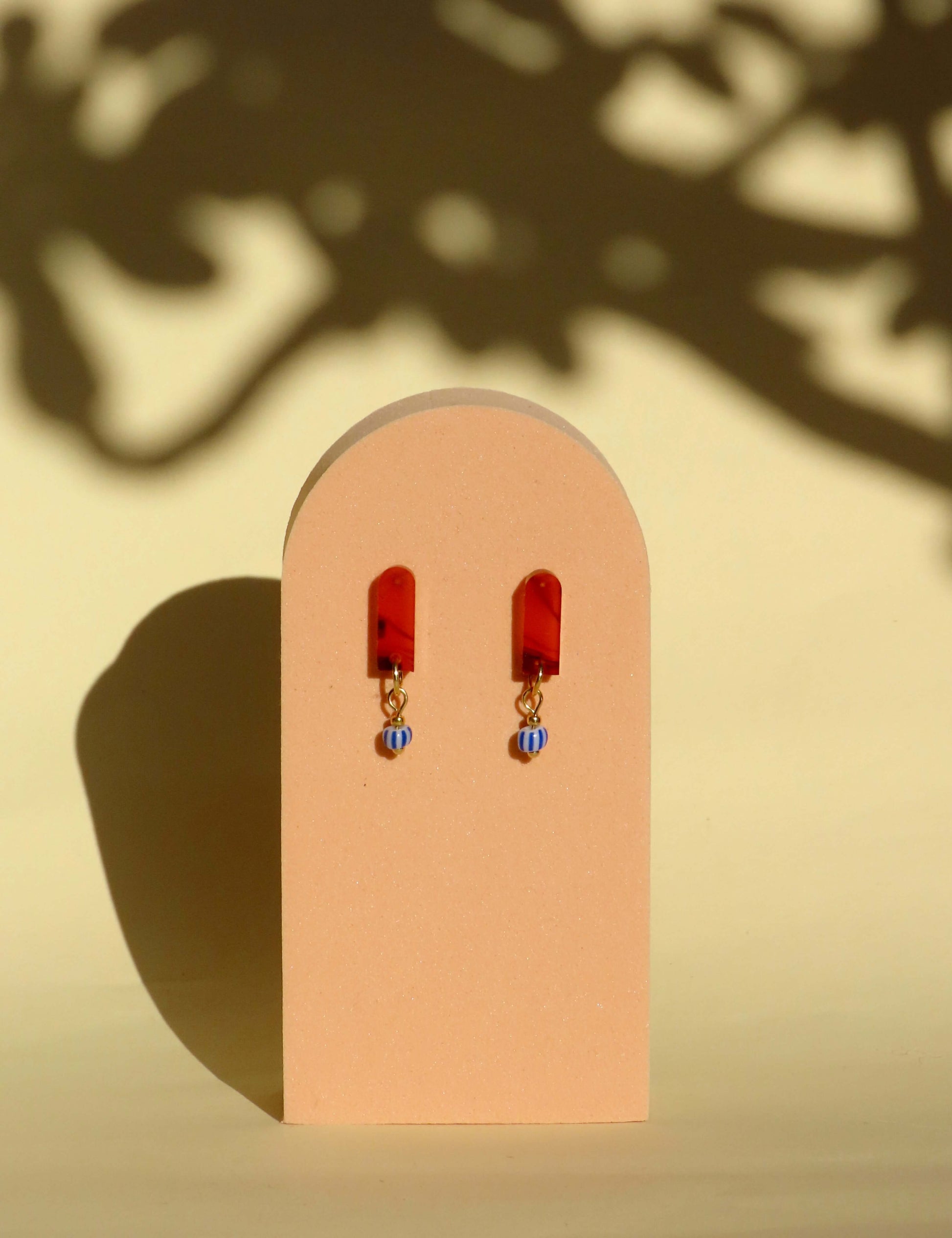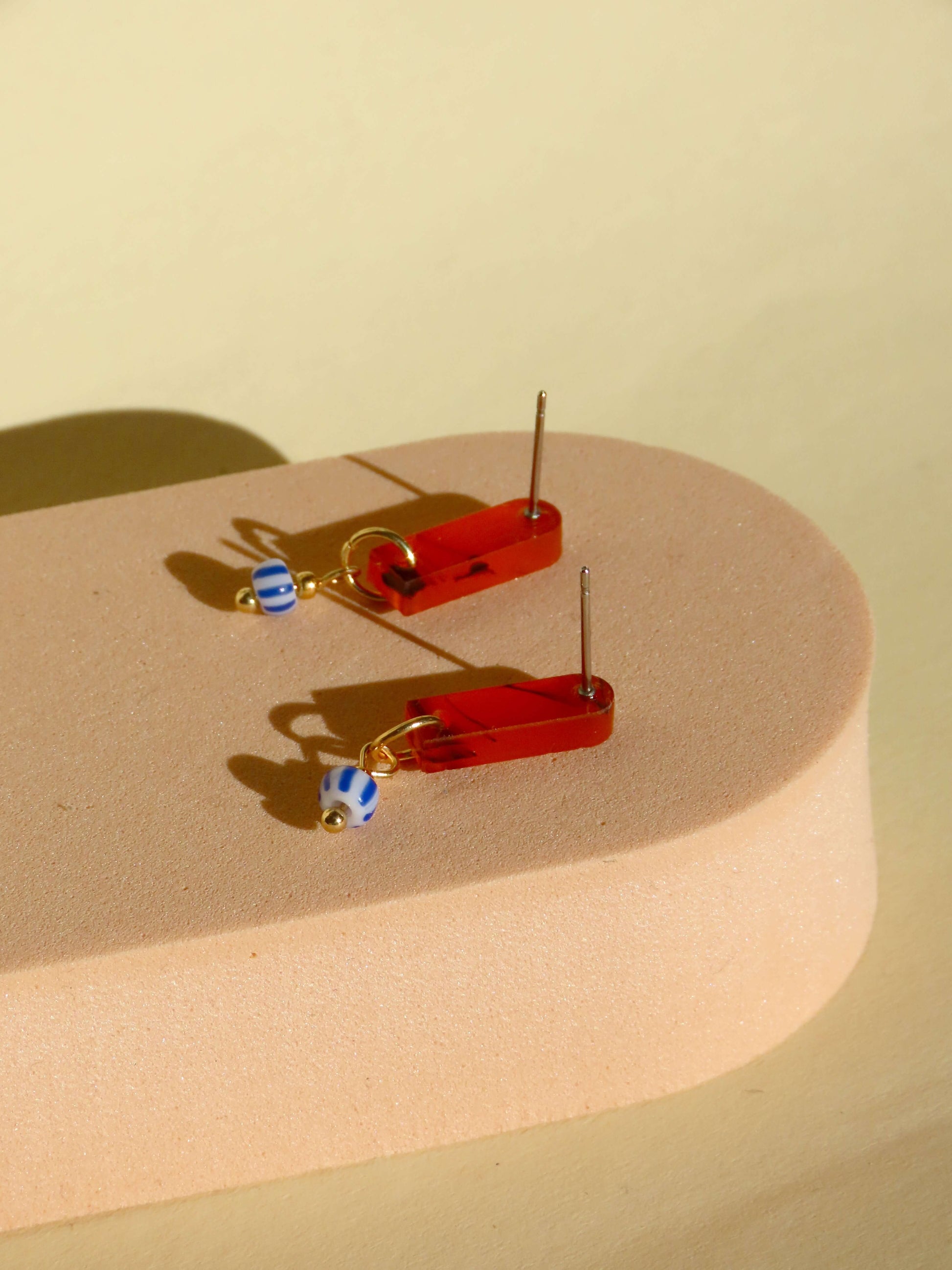 Das Zusammenspiel aus geometrischer Strenge und sanften Rundungen, warmen Erdtönen und frischem Blau macht die Ohrringe zu einem besonderen Statement für jeden Tag. Hautfreundlich, federleicht und stilvoll.