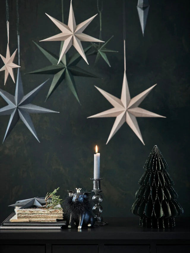 Dieser handgefertigte Weihnachtsstern aus Papier von Lene Bjerre eignet sich perfekt dazu, eine schöne nordische Weihnachtsstimmung zu schaffen. Durch sein schlichtes Design lässt er sich gleichzeitig ideal mit anderen Farben und Materialien kombinieren. Hänge den Stern in ein Fenster oder von der Decke herab. Platziere ihn alternativ auf einem Regal oder einer Kommode. Mit einem trockenen Tuch lässt sich der Stern problemlos reinigen. In 2 Größen und 3 Farben erhältlich.