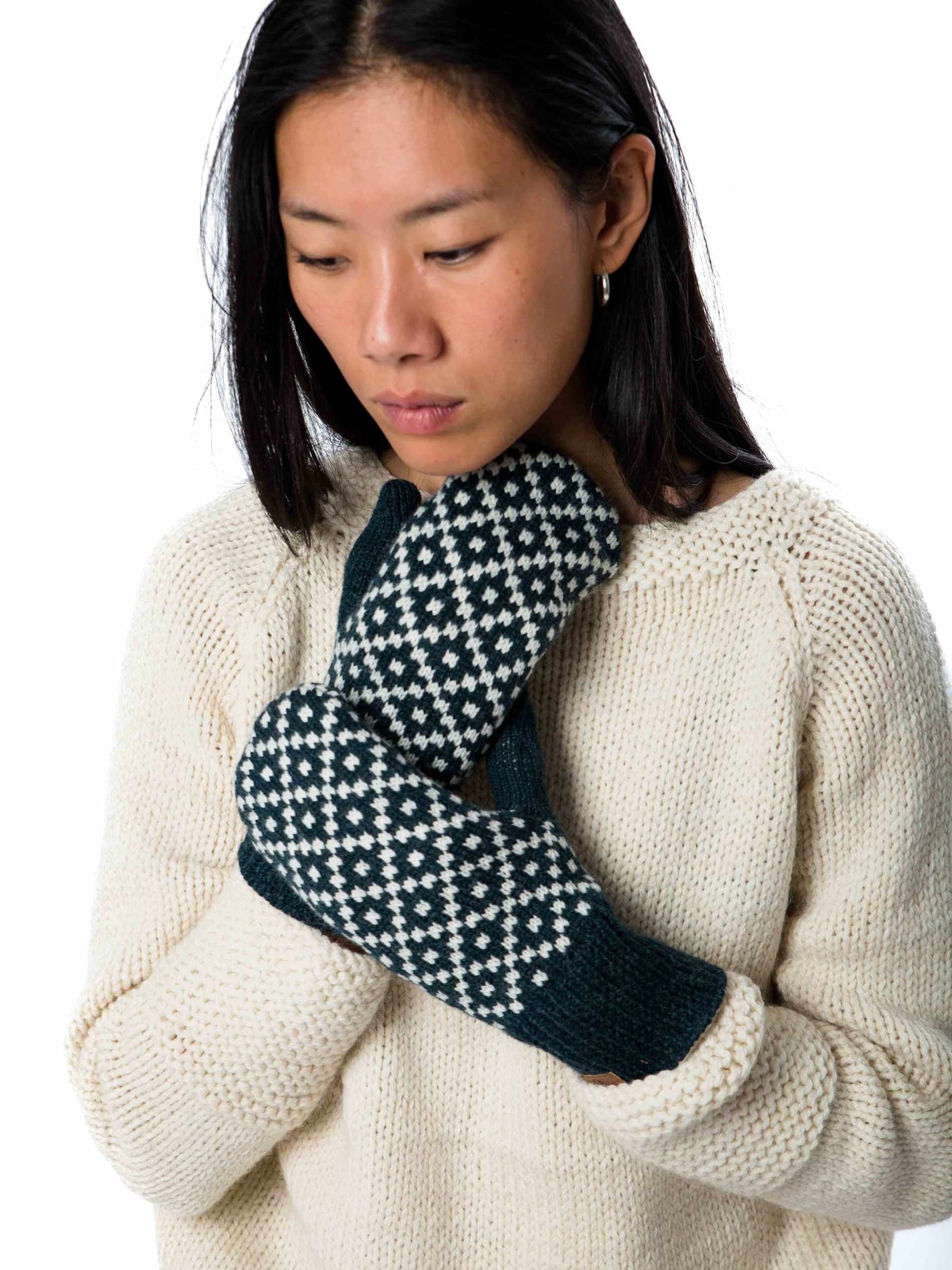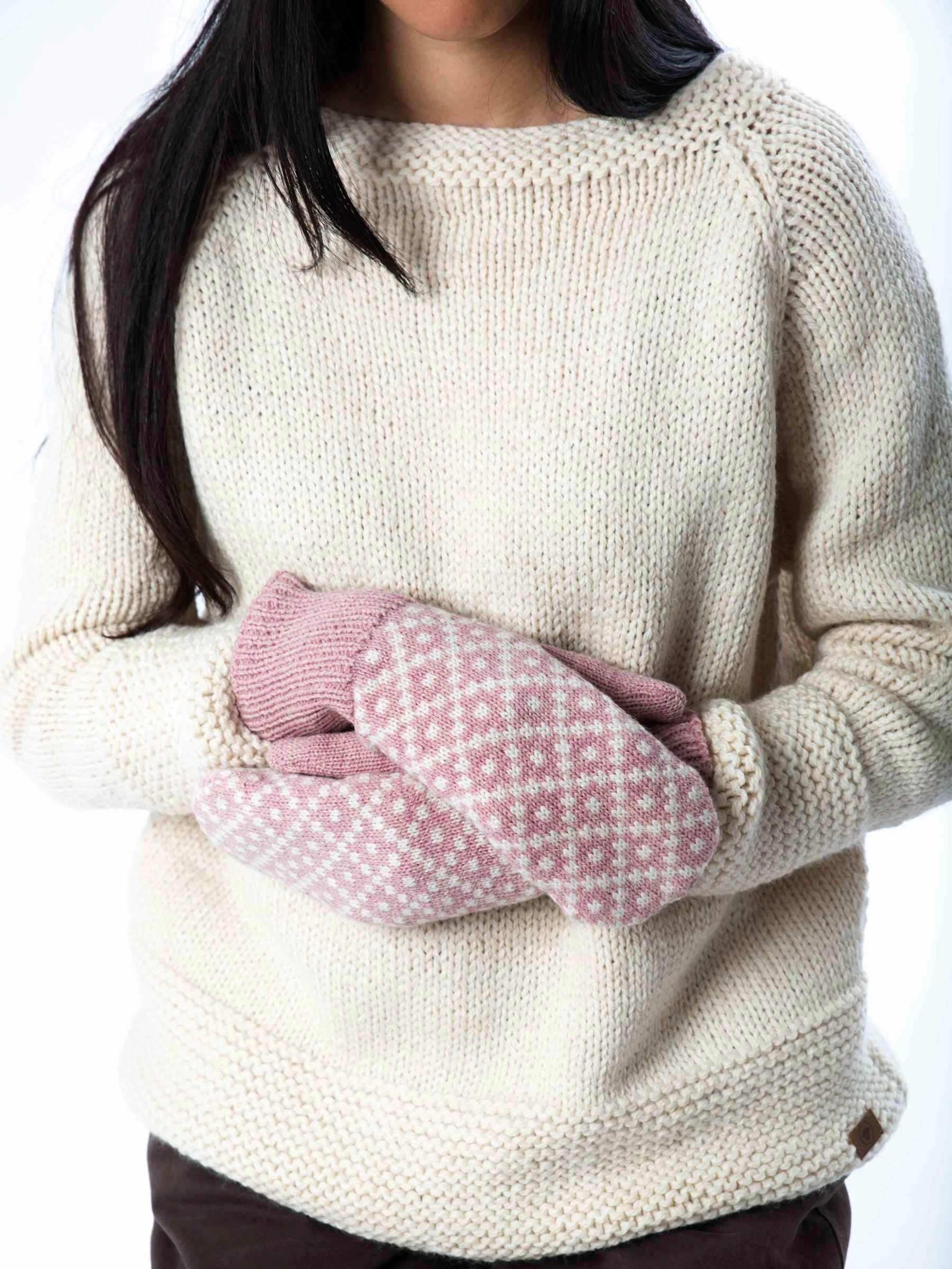 Modische Strickfäustlinge im Norweger Muster aus besonders weicher Merinowolle.