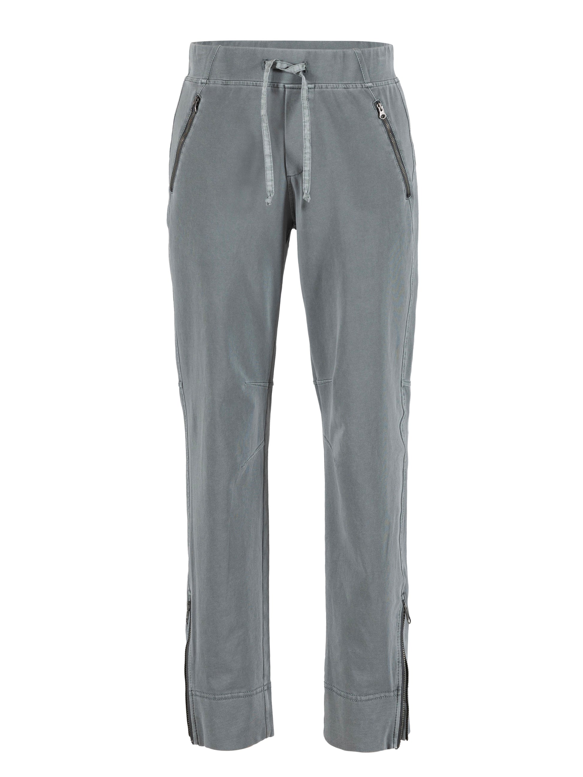 Sportive Sweathose im Vintage look mit Gummizug und Bindeband aus einer besonders hochwertigen Baumwolle (antique washed). Reißverschlüsse an den Taschen und seitlich an den Säumen.