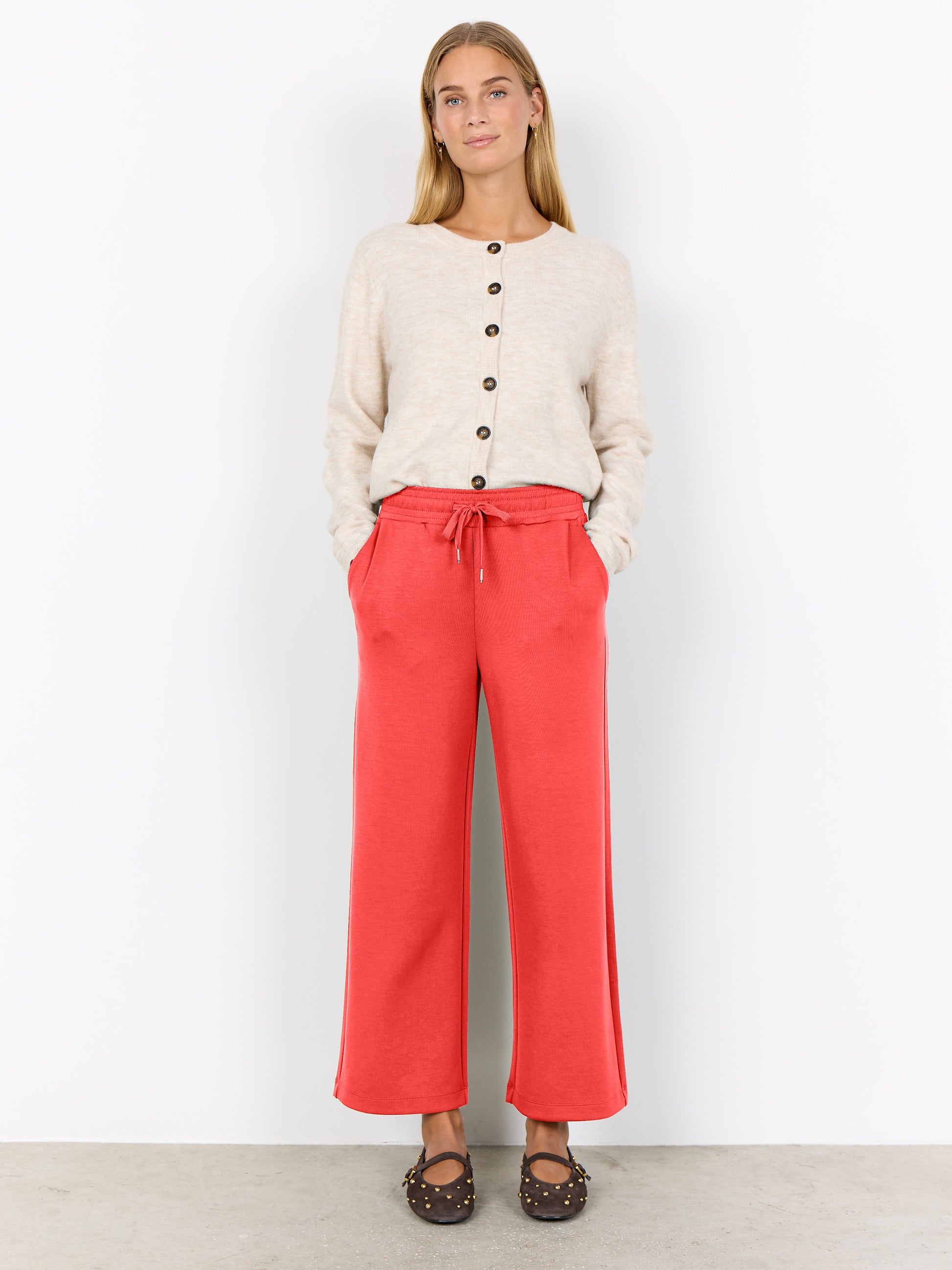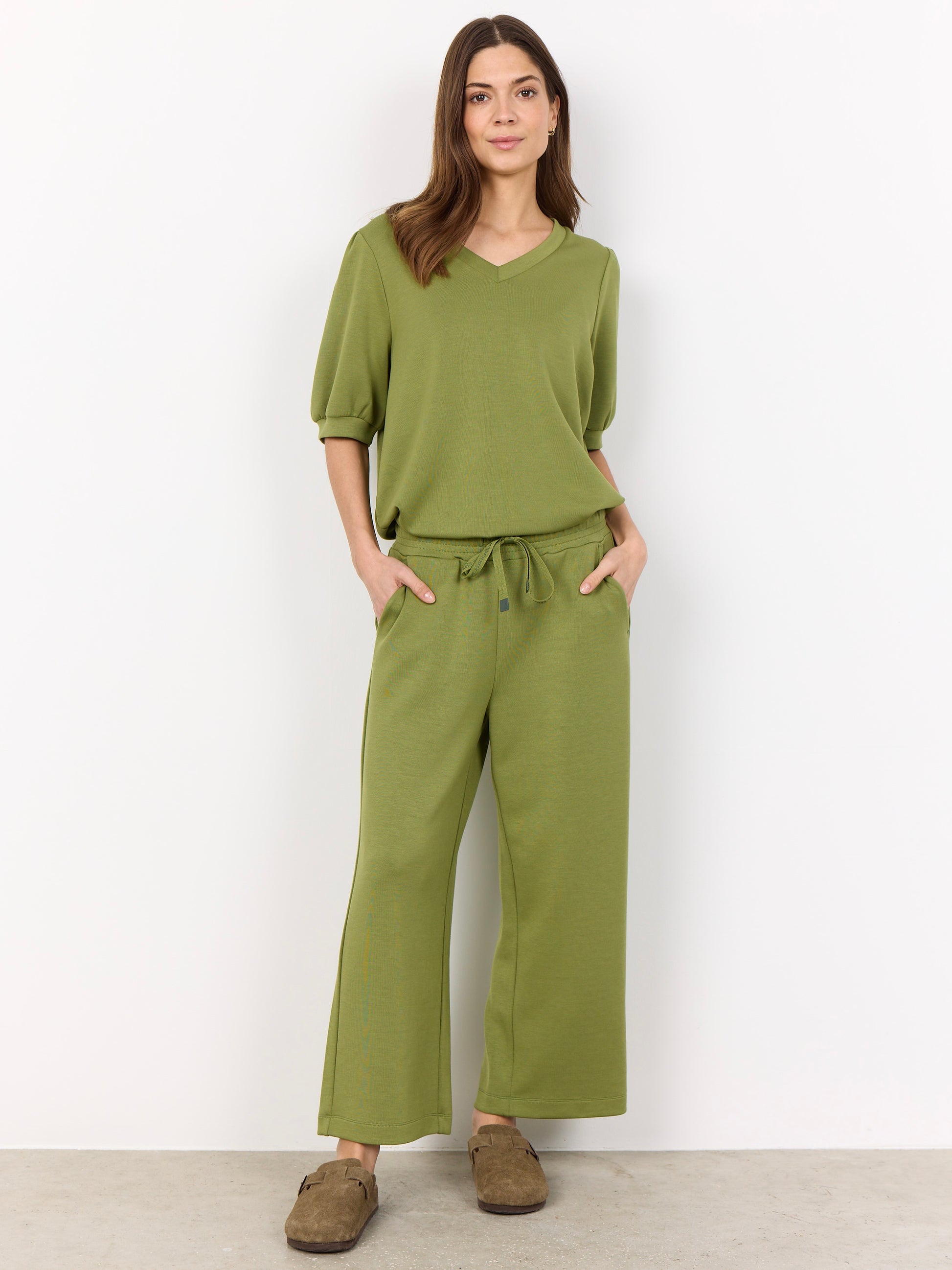 Lässige Hose mit weiten Beinen. 7/8 Länge. Aus einer angenehmen Modalmischung gefertigt. Seitliche Eingrifftaschen und angesetztes Bündchen mit Gummizug und Bindeband. Sowohl in der Freizeit als auch ins Büro zu tragen.