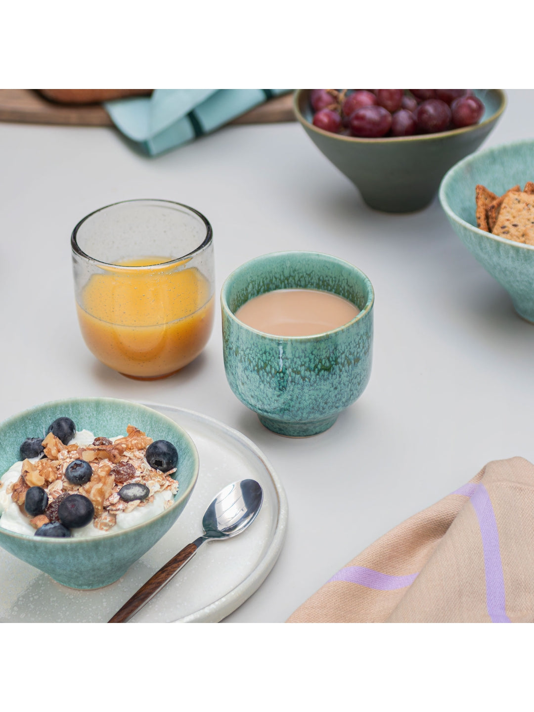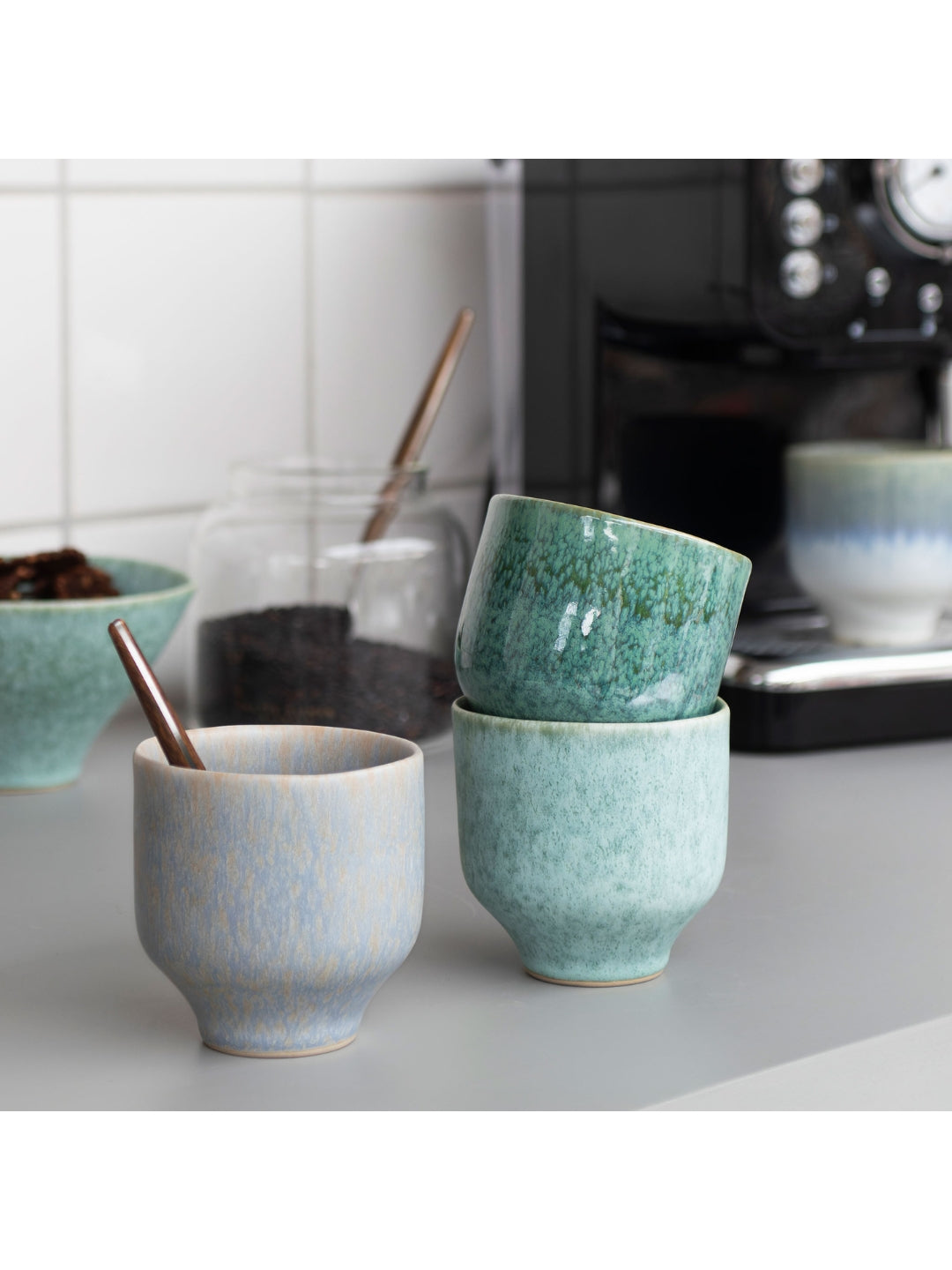 Verleihe deinen Alltagsritualen einen Hauch von Stil mit den ELEMENTS Bechern von Mette Ditmer. Der Steingutbecher besticht durch harmonische Grüntöne, die durch eine Kombination aus matter und glänzender Glasur veredelt werden – jede Glasur bringt das Beste der anderen zum Vorschein.