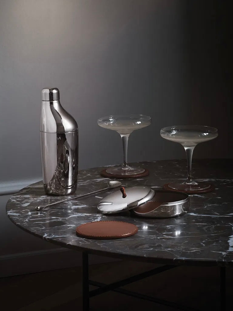 Aurelian Barbrys ergonomisches Sky-Set aus Bar- und Servierzubehör verkörpert die Kombination aus Form und Funktion, die das skandinavische Design auszeichnet. Das vom Designteam von Georg Jensen entworfene Untersetzer-Set ist eine stilvolle Ergänzung dieses Universums.
