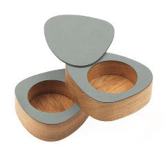 Dieser innovative Salz und Pfeffer Behälter aus hochwertigem dänischen Eichenholz ist mit farblich abgesetzten Abdeckungen aus recyceltem Leder gefertigt. Ein Magnet hält die beiden Holzelemente und die Lederabdeckung zusammen. Der Behälter lässt sich problemlos mit dem vorhandenen Tischgeschirr kombinieren. Eine moderne Ergänzung jeder Tischdekoration. Auch als Kerzenhalter für Teelichte nutzbar. In vielen Farbvariationen erhältlich.