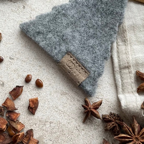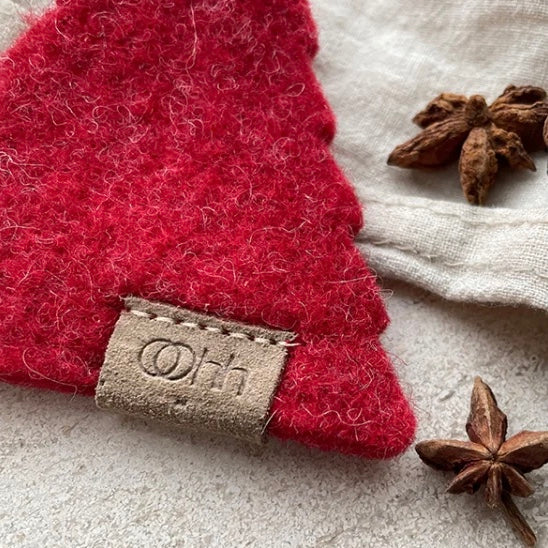 Handgefertigter, aus Wollresten hergestellter Baum als Anhänger aus der Oohh Kollektion von Luebech Living Aalborg.