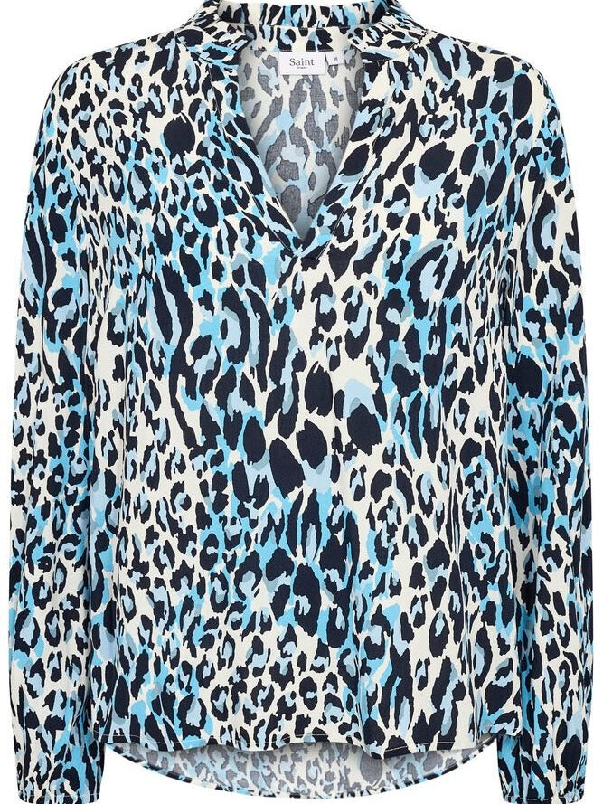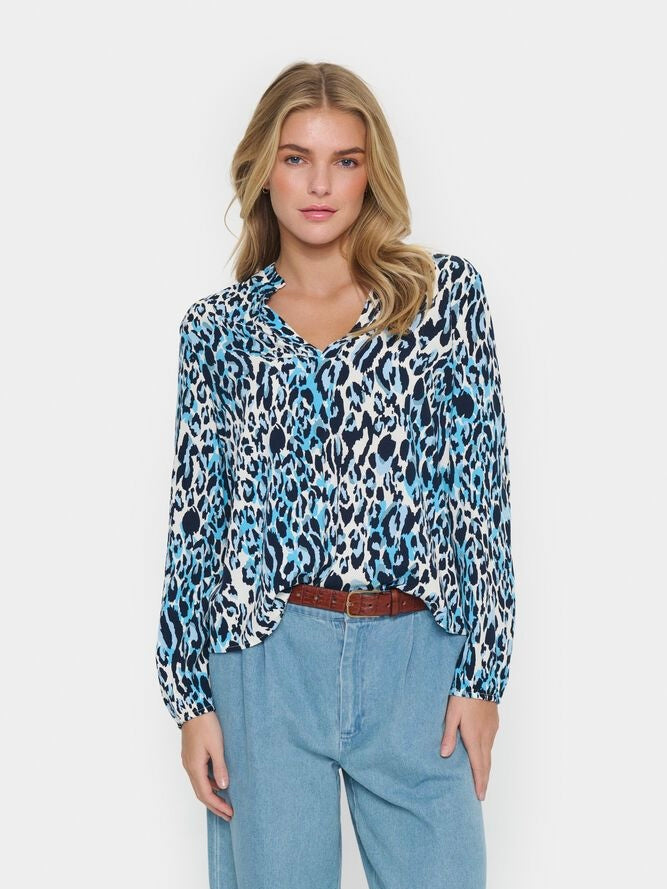 Modisches Shirt mit einem farblich abgestimmten Tierdruck. Chinakragen mit V-Ausschnitt. Lange Ärmel, lässig weite Form. Aus einer soften Viskosequalität gefertigt. Gummizugbündchen am Saum.