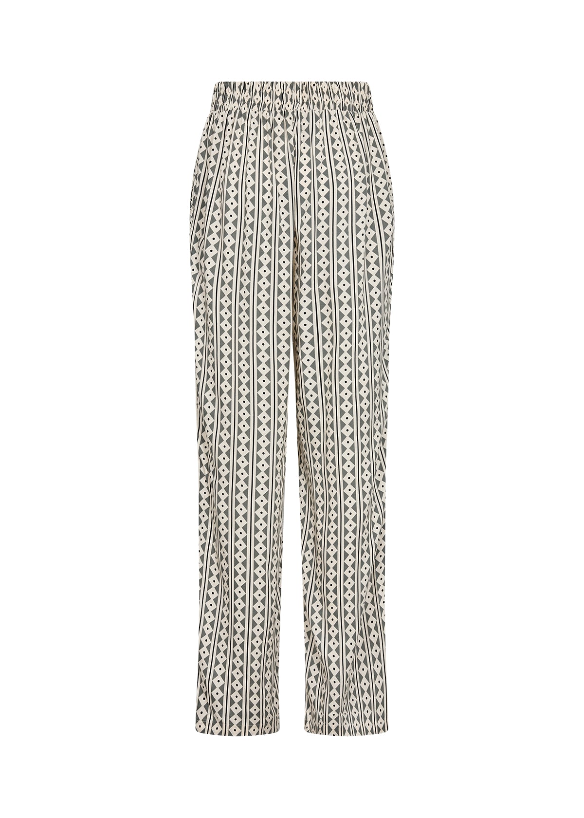 Lässige Hose im Palazzo Stil mit weiten Beinen. Fließende Viskose in einem modischen Fantasieprint. Seitliche Eingrifftaschen und angesetztes glattes Bündchen mit Gummizug. Sowohl in der Freizeit als auch ins Büro zu tragen.