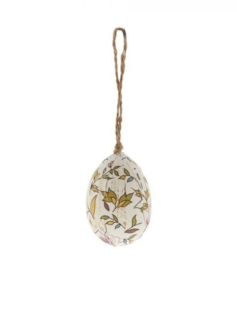 Geschmackvolles Deko Osterei mit einem handgemalten Floralmuster auf dem ganzen Ei. Mit einem rustikalen Naturband zum Aufhängen.