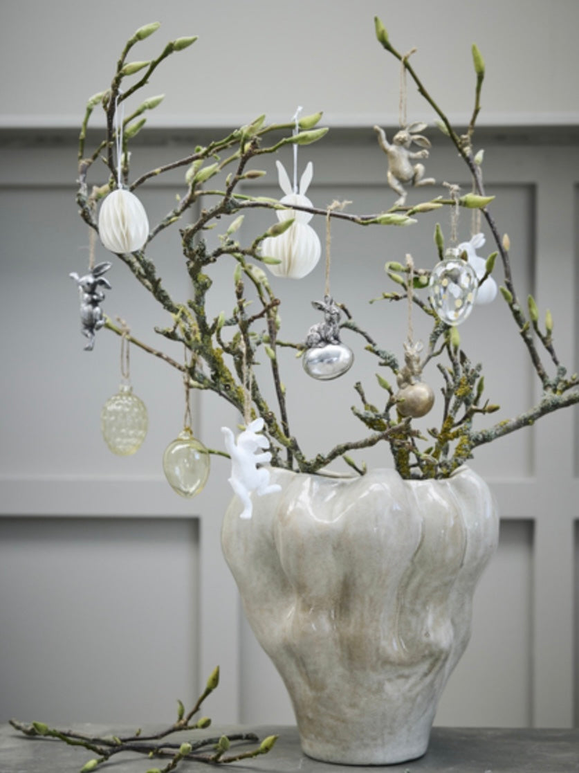 Niedlicher Deko Osteranhänger mit einem tanzenden Osterhasen. Mit einem rustikalen Naturband zum Aufhängen.