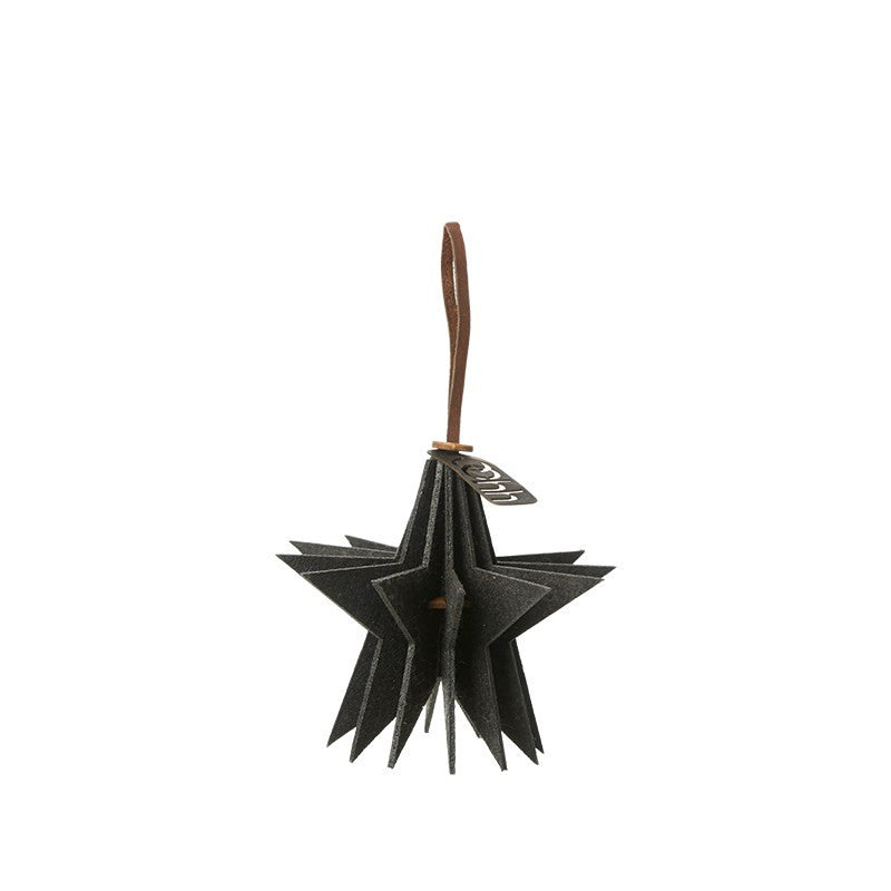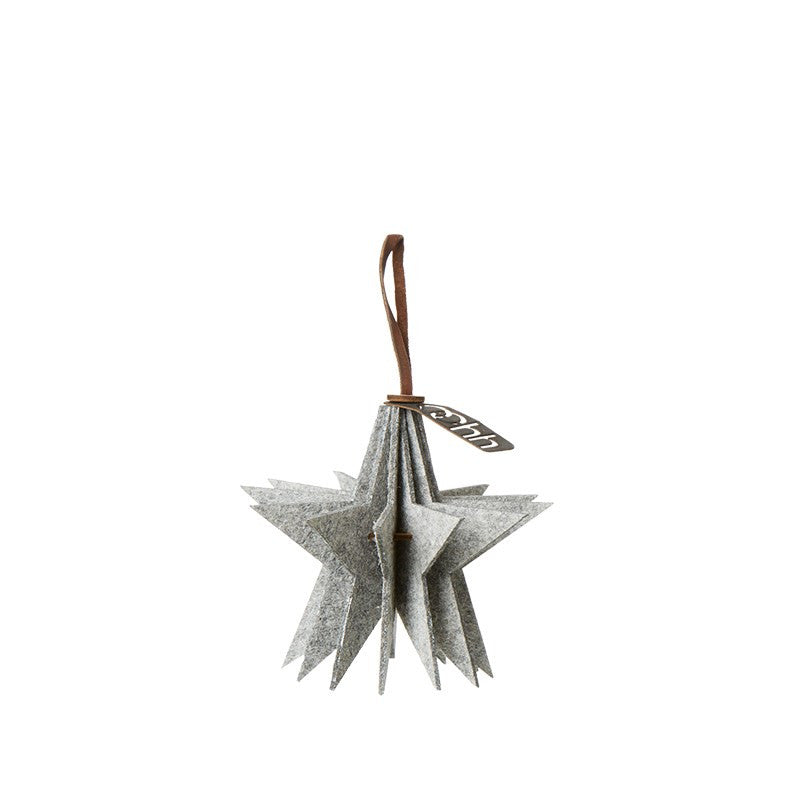 Zum Basteln: Formschöner Weihnachtsstern als Anhänger aus recyceltem Plastik in Filzoptik mit feinen Holzdetails aus der Oohh Kollektion von Luebech Living Aalborg. Der Anhänger besteht aus 12 Filzscheiben, die auf ein rundes Mittelstück kreisförmig aufgesteckt werden.
