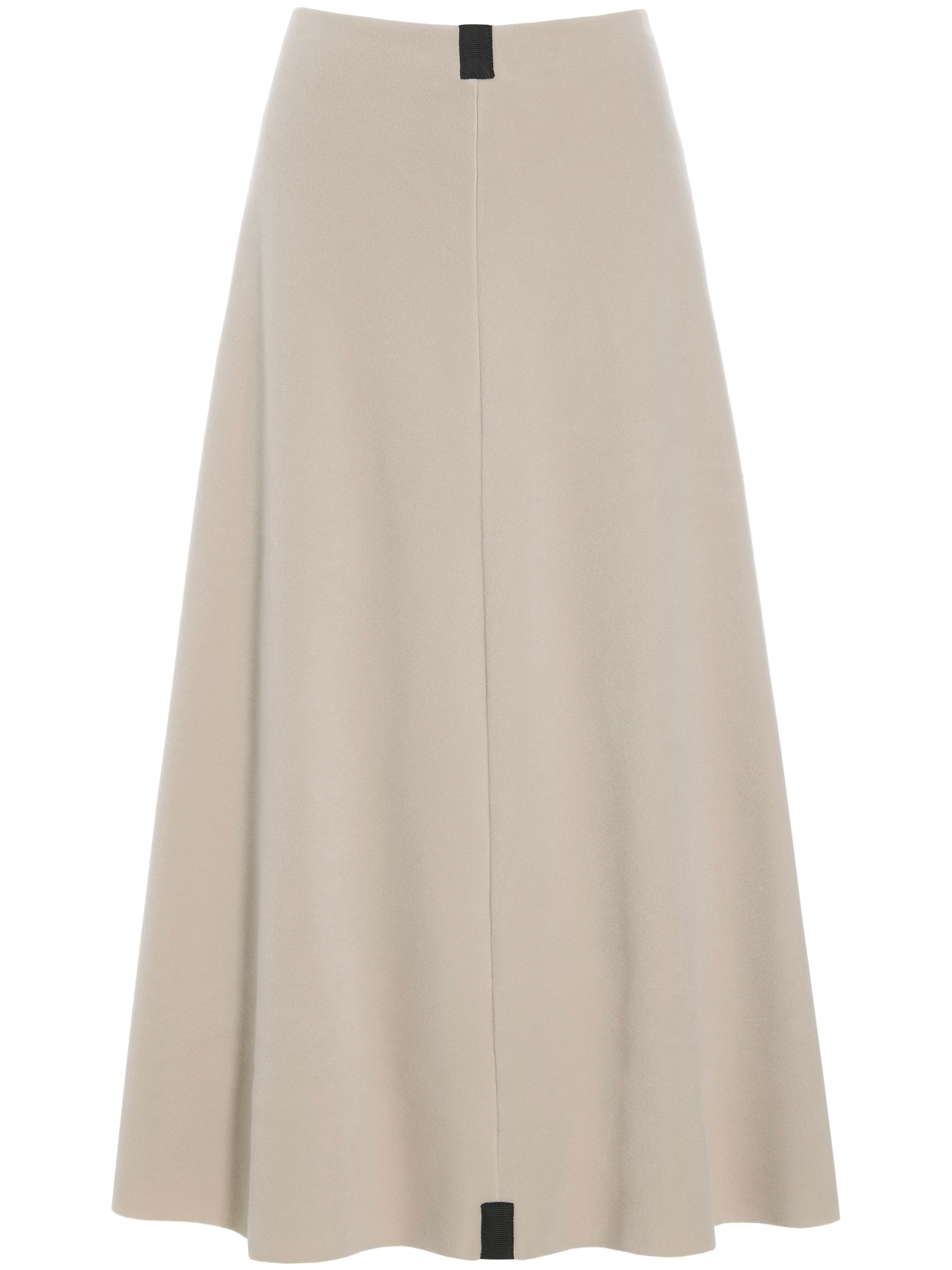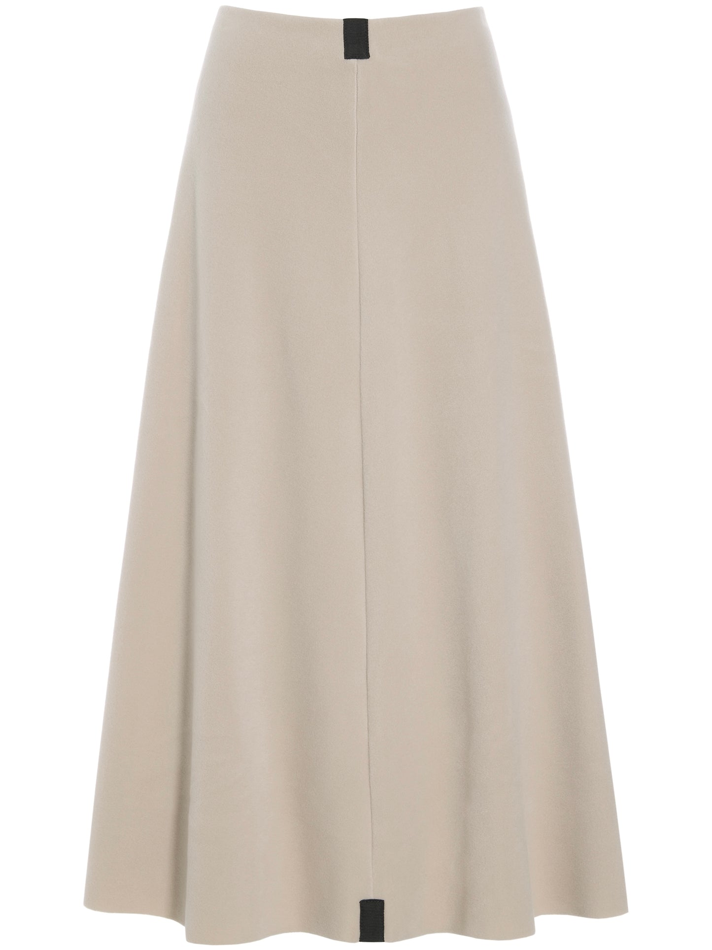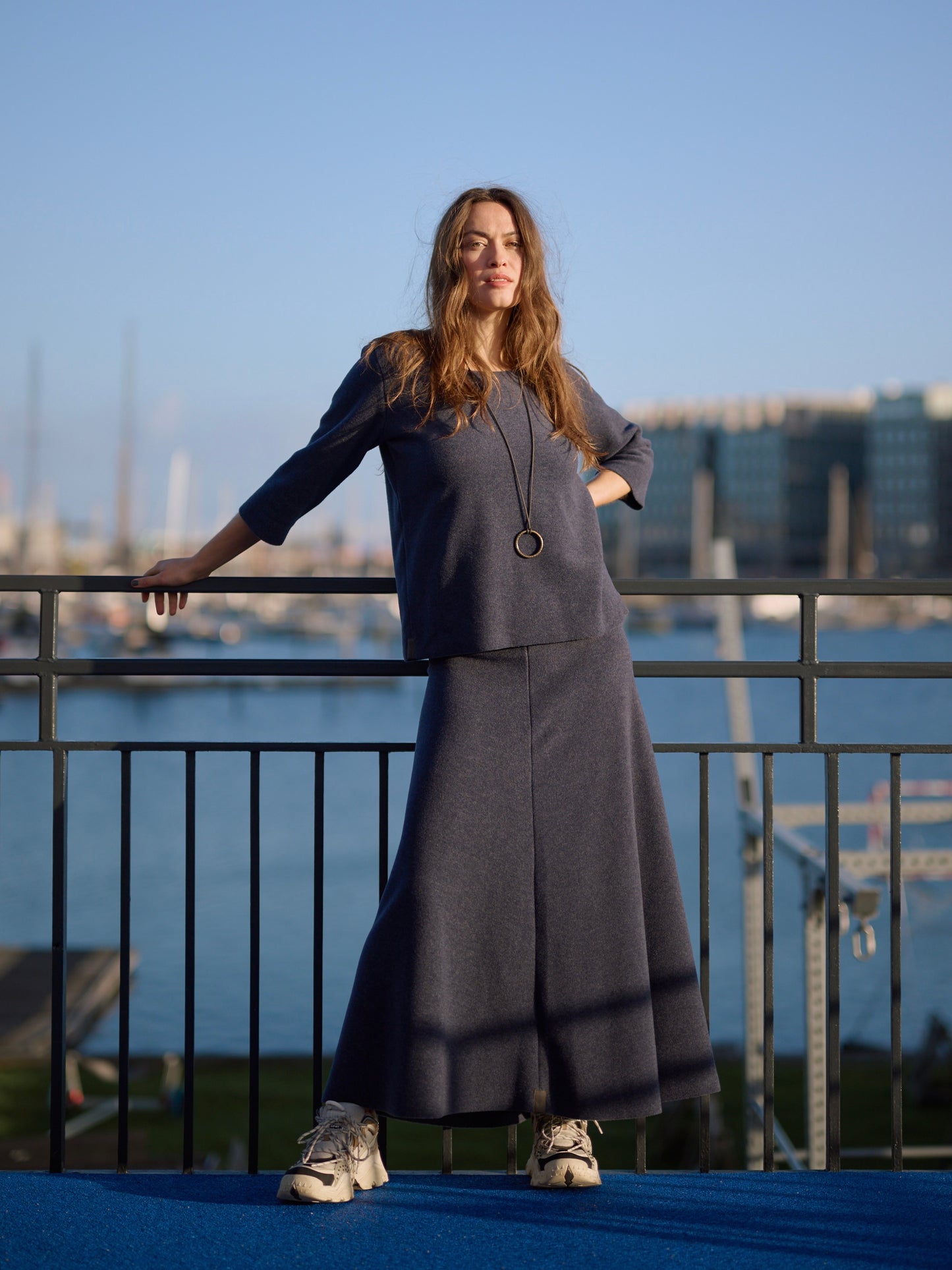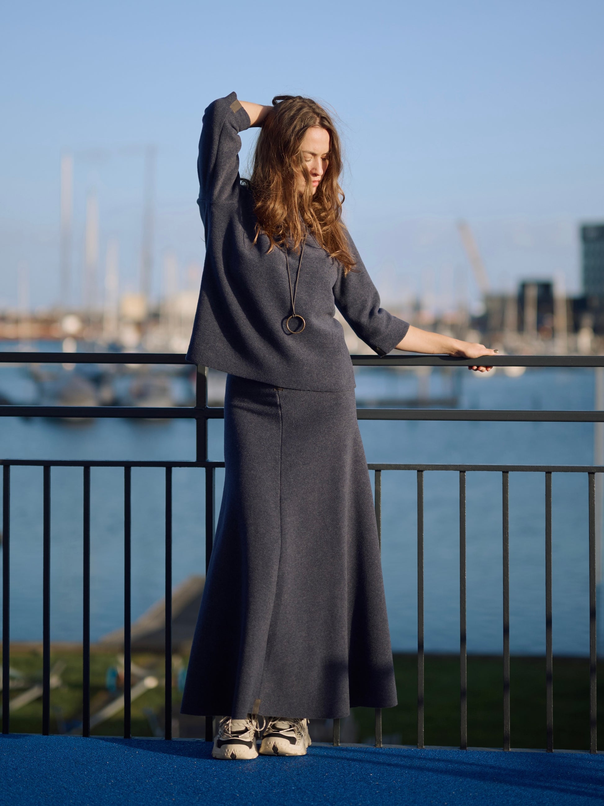 Langer ausgestellter Rock aus super softem Fleece. Du kannst die Länge des Rockes an deine Wünsche anpassen, je nachdem ob du ihn auf Taillen- oder Hüfthöhe trägst. Kombiniere den Rock mit einem Jumper und deinen Lieblingsstiefeln für einen bequemen Look, oder trage ihn zusammen mit einem weißen Shirt und hochhackigen Schuhen zu formelleren Anlässen.