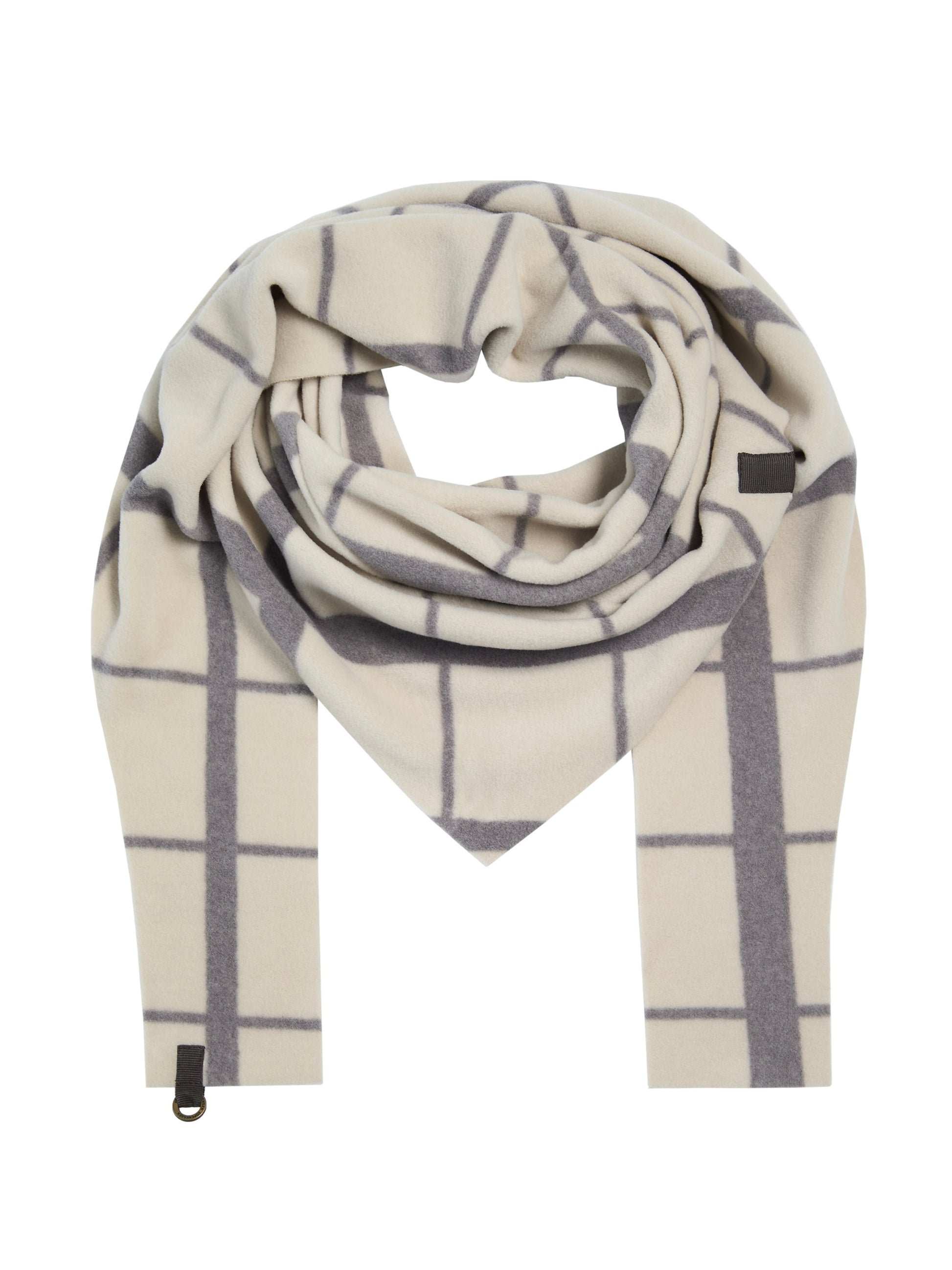 Fleece Schal als Dreieckstuch mit kleinen Textildetails aus Ripsband. Der super softe Fleecestoff lässt jeden kalten und windigen Tag alt aussehen. Der Schal ist auf Reisen ein perfekter Begleiter als Kissen oder Schmusedecke. Die Farben des Schals passen perfekt zu den angebotenen Pullovern von Henriette Steffensen.