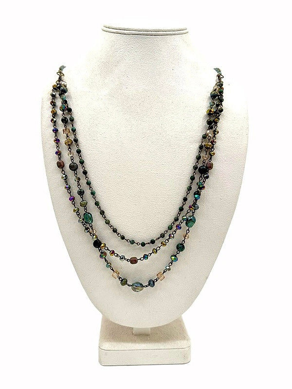 Dekorative Halskette aus Metall in einem Mix aus unterschiedlichen, bunten Ziersteinen und Glasperlen. Nickelfrei.