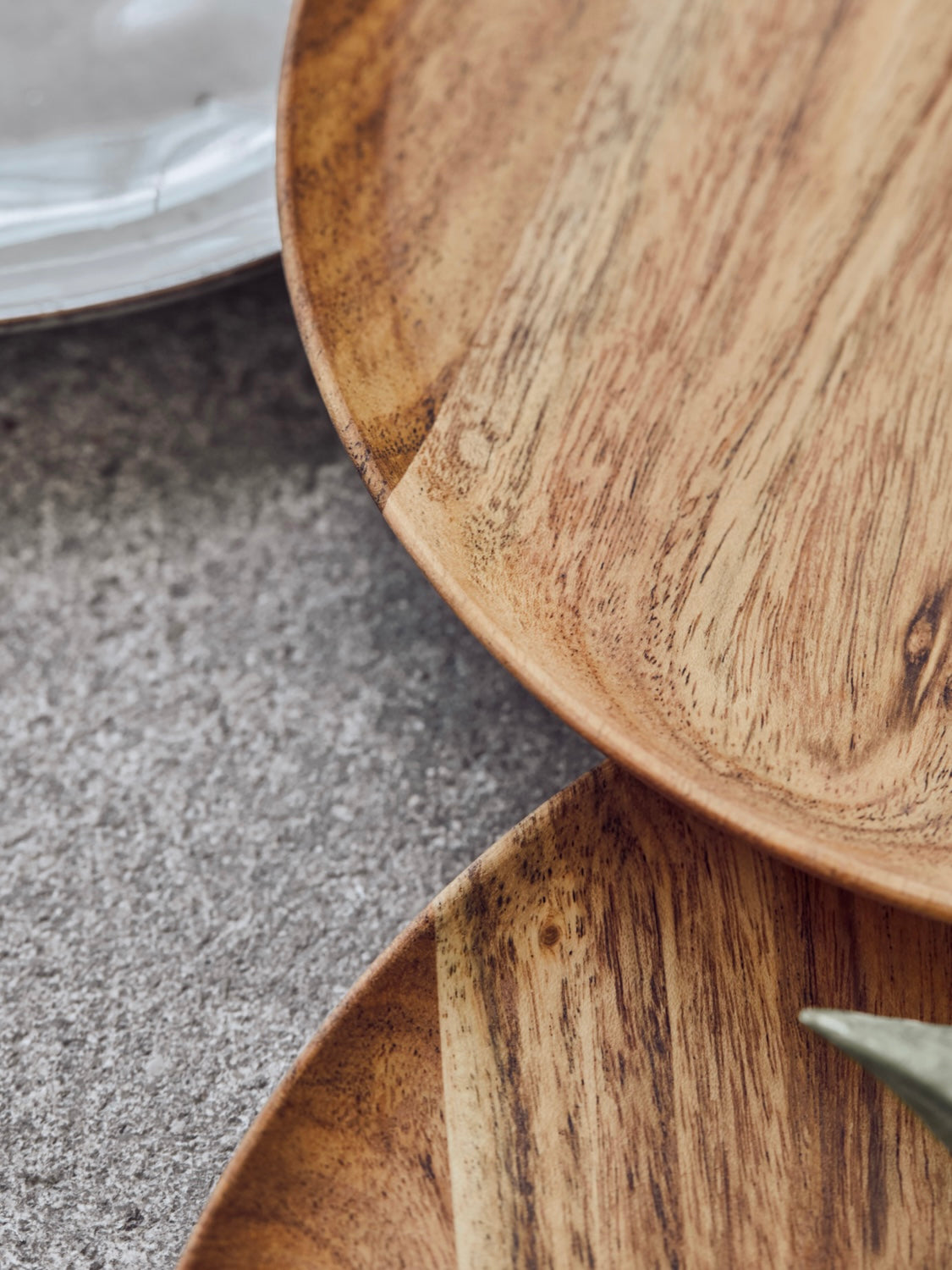 Dieses dezente, runde Holztablett von House Doctor ist aus Akazienholz hergestellt und verleiht somit deiner Einrichtung Wärme und Natürlichkeit. Das Tablett ist ideal für deinen Becher Kaffee am Nachmittag, aber auch zur Aufbewahrung von Kleinkram in der Küche oder als Dekoelement im Wohnzimmer. In 2 Größen erhältlich.