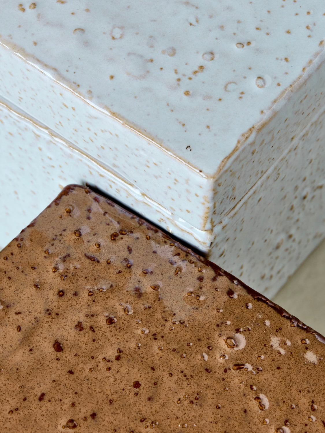 - Maße: braun 12x12cm, Höhe 8cm, hellblau/sand 10x10cm, Höhe 12cm