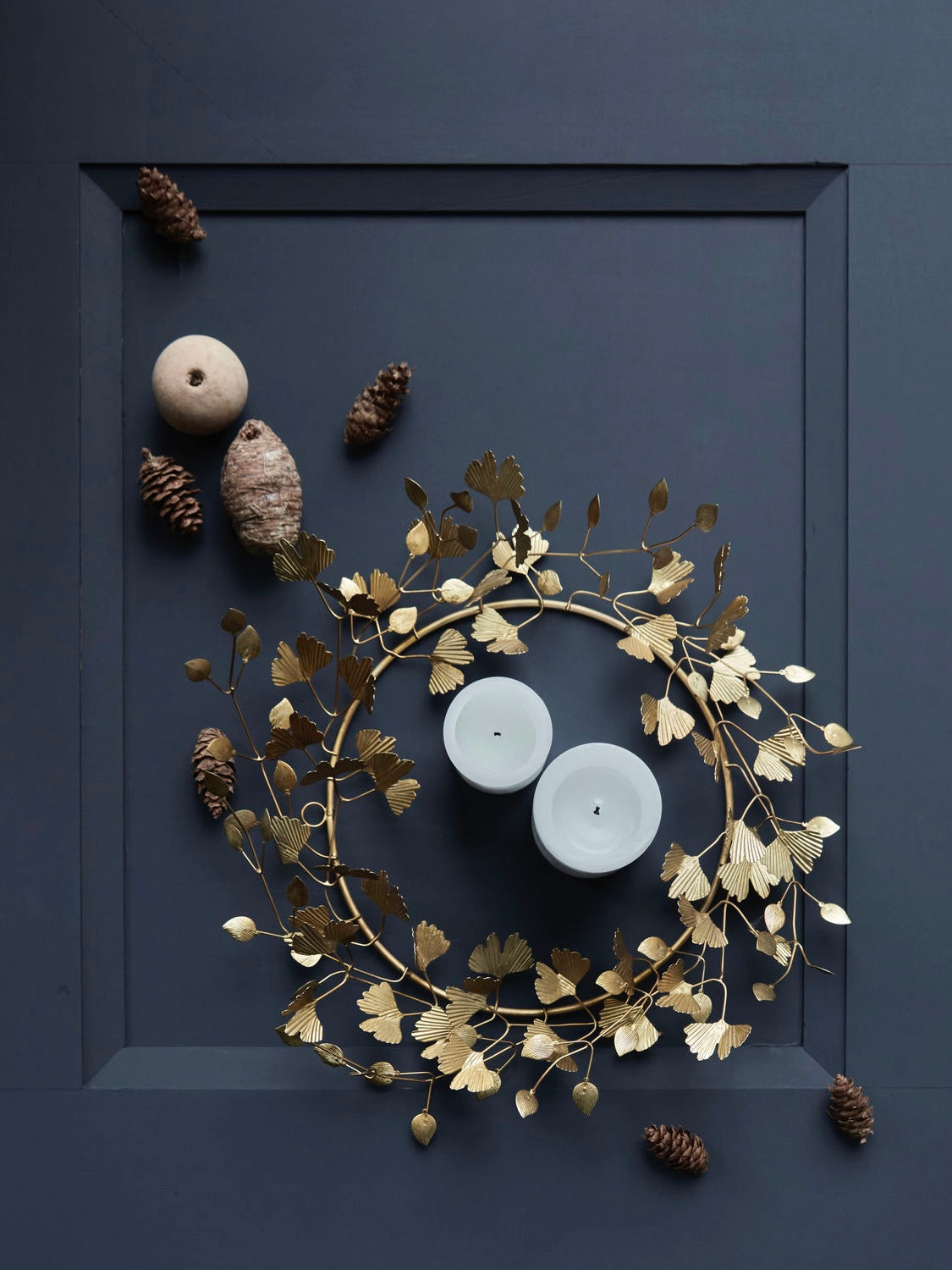 Dieser handgemachte Kranz mit komplett goldener Messingoptik von House Doctor ist die elegante Ergänzung für deine Weihnachtsdeko. Die Blätter lassen sich vorsichtig anpassen und der Kranz eignet sich nicht nur ideal als Wanddeko, sondern auch als Tischdekoration. Mit einer oder mehreren Stumpenkerzen und deinem Lieblingsschmuck bekommt der Kranz einen persönliche Ausdruck. Dieses Design ist einfach unglaublich vielseitig und zeitlos.
