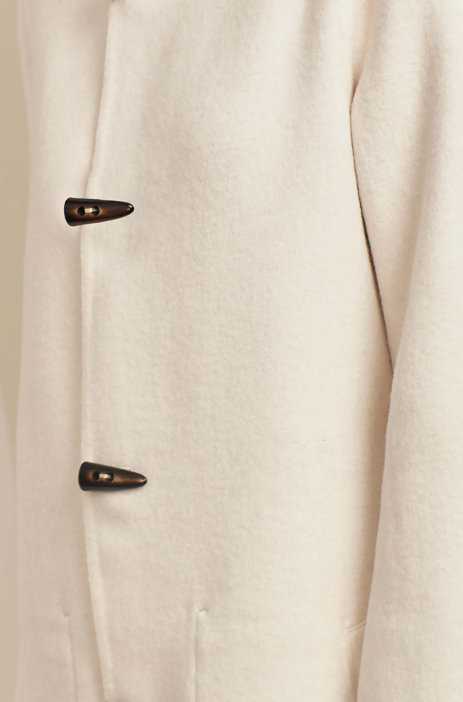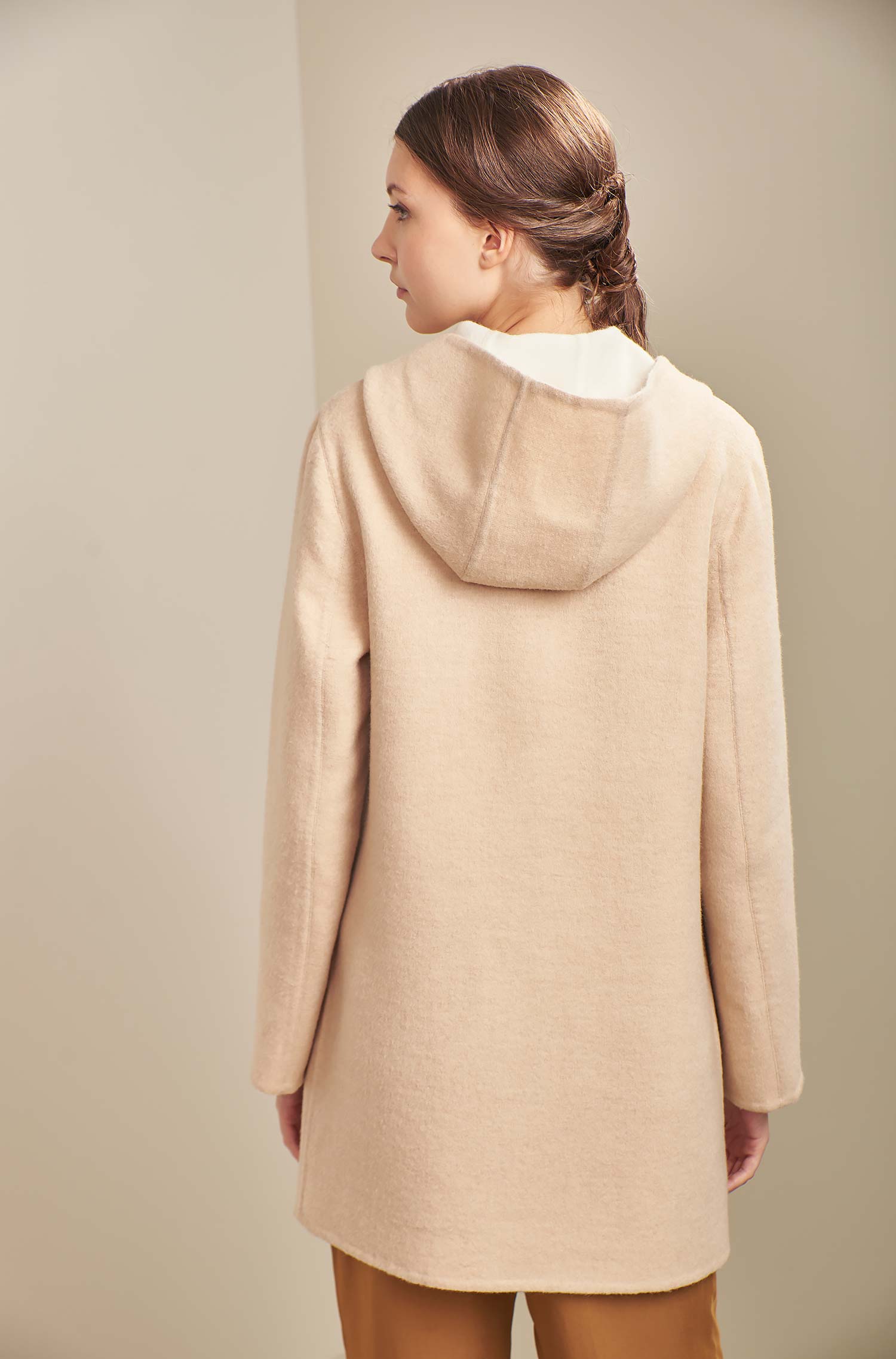 Der ANASTASIA Mantel ist ein luxuriöser, leichter Wende-Duffle-Coat mit zwei Farbseiten, der Eleganz und Funktionalität vereint. Der hochwertige Materialmix mit 40 % Baby Alpaka sorgt für weiche Haptik, angenehme Wärme und langlebige Qualität – ideal für Übergang und Winter.