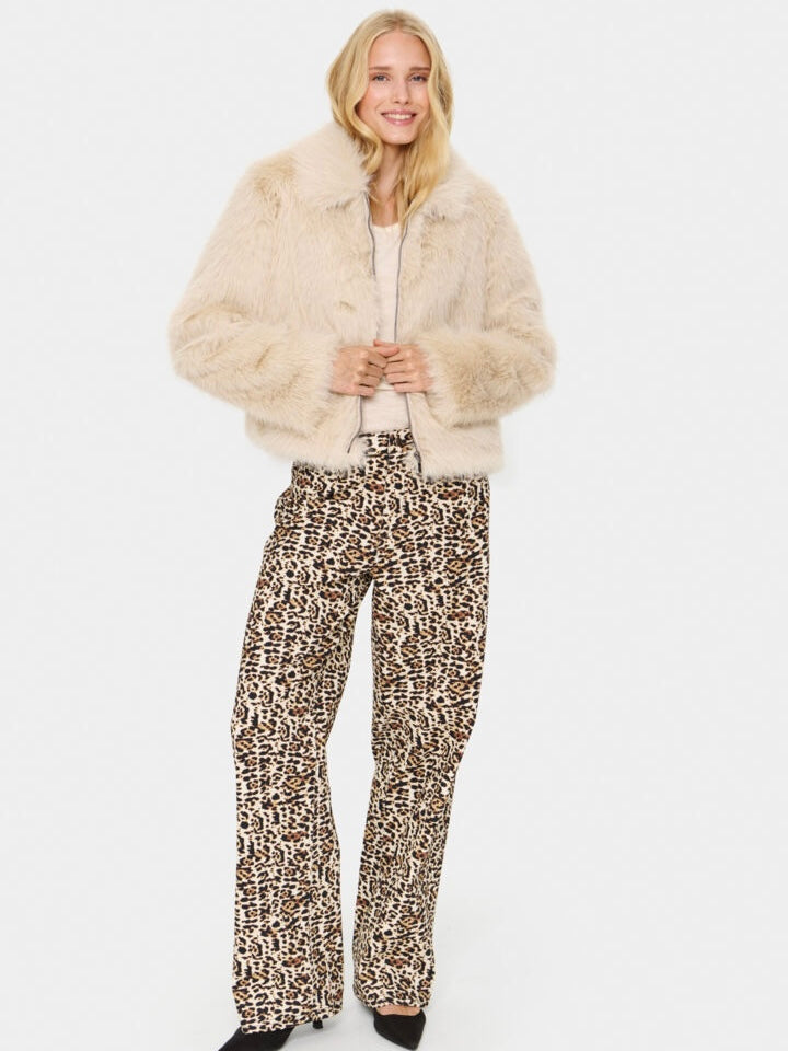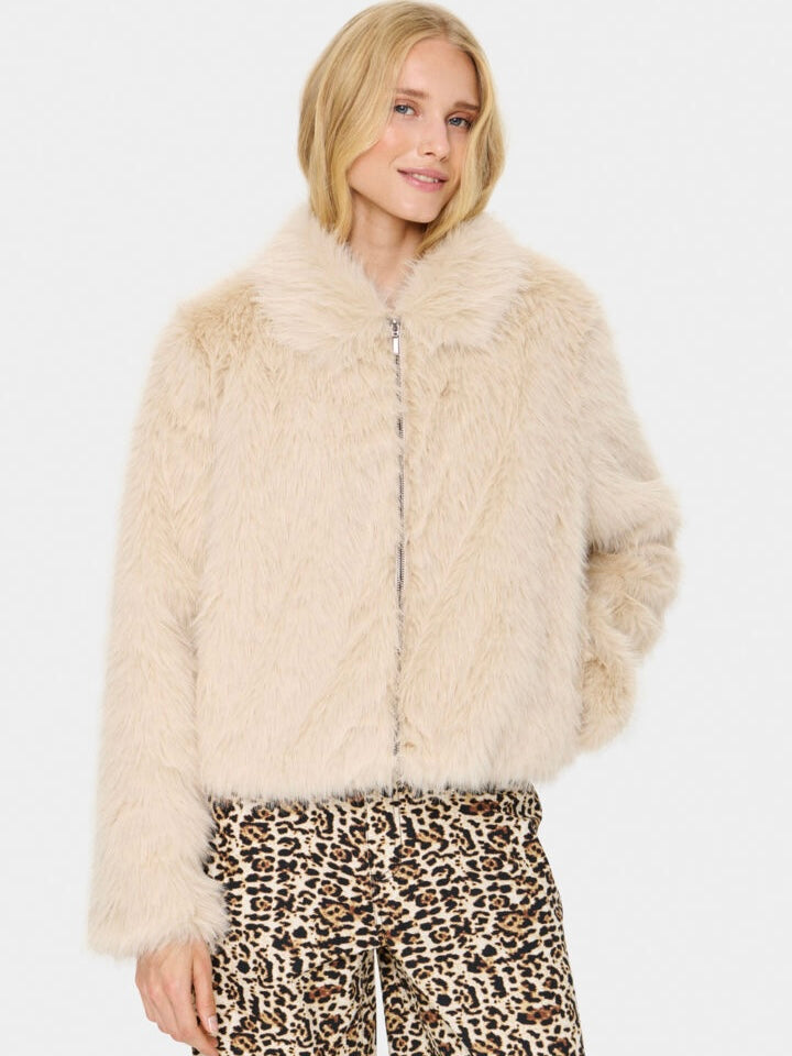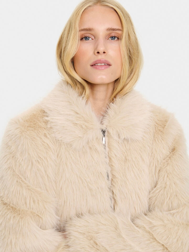 Modische Kunstpelzjacke mit Futter und Reißverschluss.