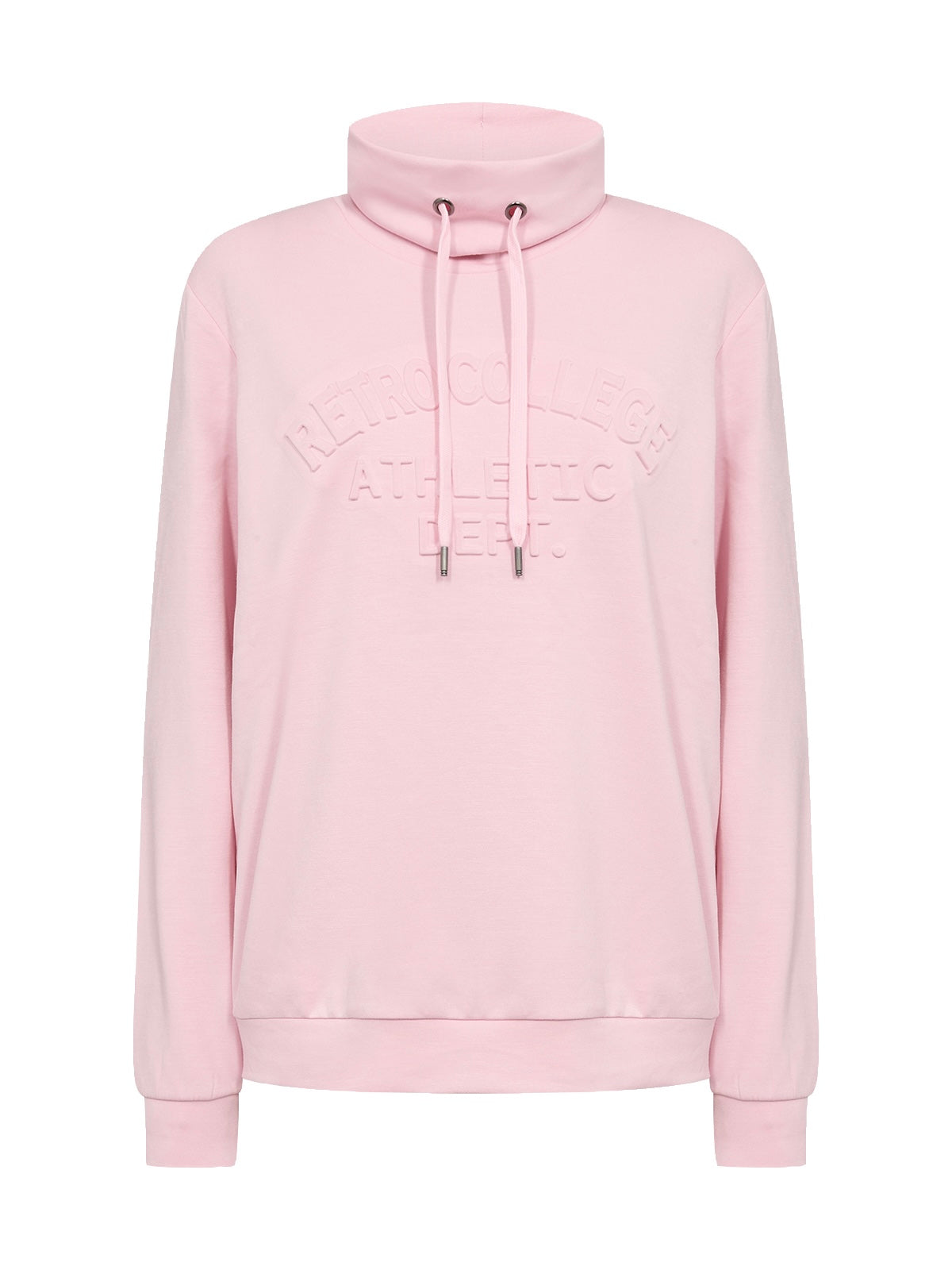 Gepflegtes Langarmshirt im Sweatshirt Look. Mit weitem Stehkragen und Bindebändern. Ton-in-Ton Frontdruck „RETROCOLLEGE ATHLETIC DEPT“. Aus einer leichten Modalmischung gefertigt. Bündchenabschluss am Saum und an den Ärmeln.