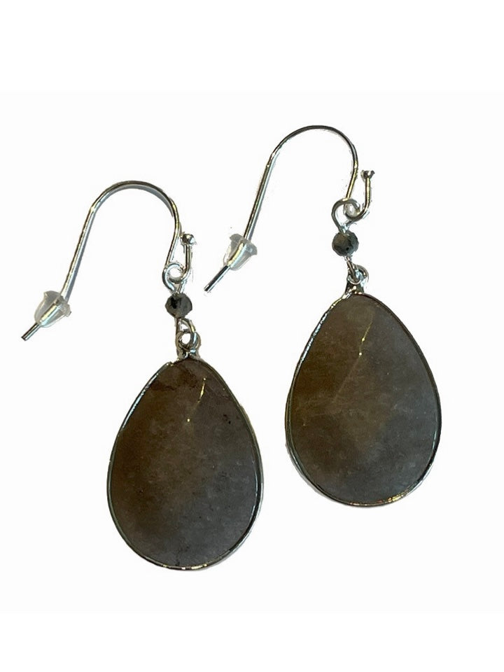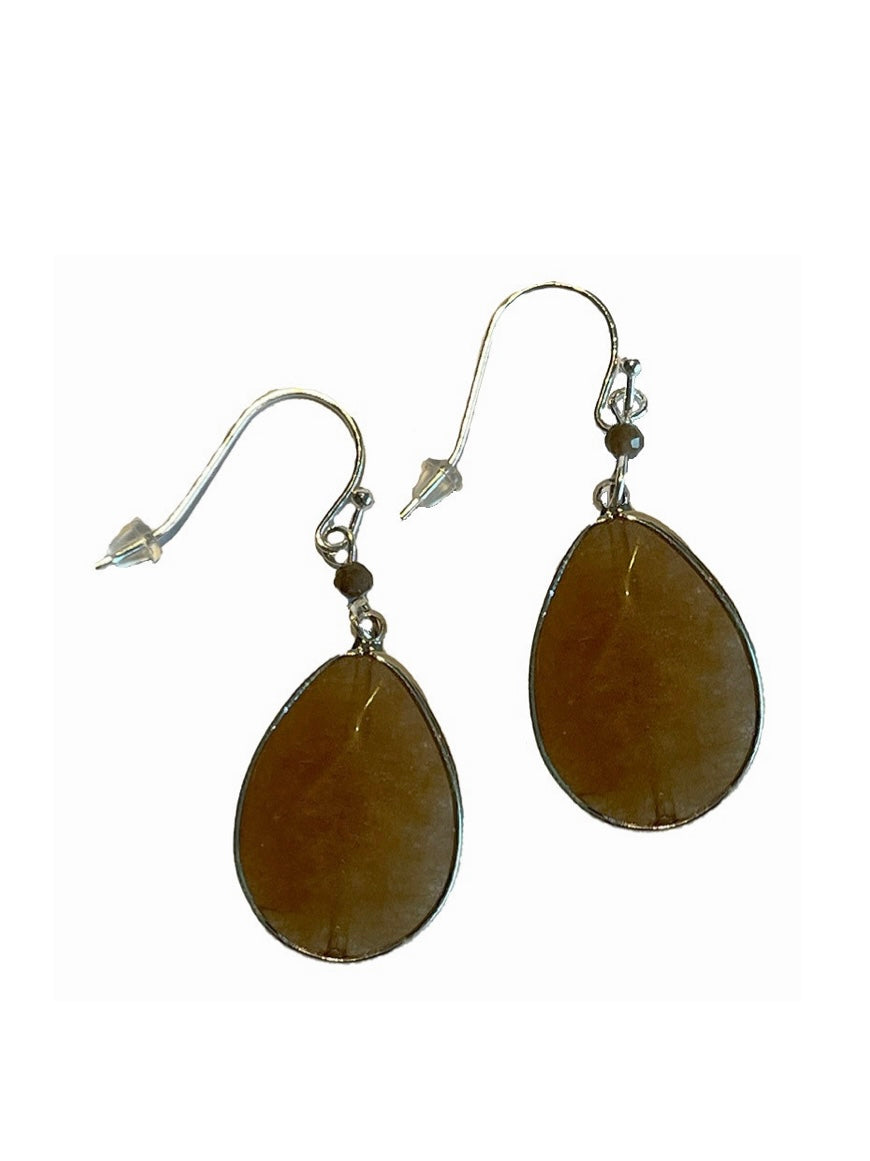 Dekorative Ohrhänger in Tropfenform mit einem eingefassten Naturstein.