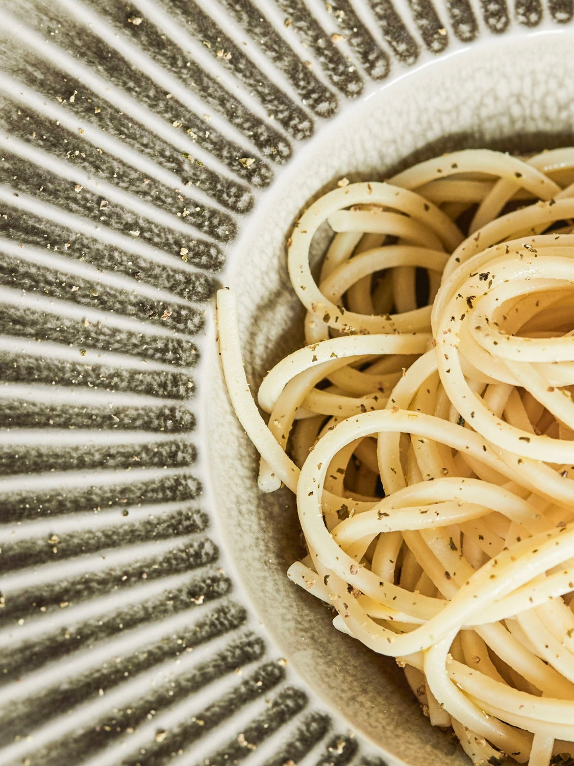 Dieser Pastateller von House Doctor macht deine Speisen zum Star. Der breite Rand macht den Teller gleichermaßen praktisch und stilvoll und präsentiert deine Gerichte auf schönste Weise. Nutze ihn für klassische Pastagerichte, für leckere Salate oder asiatische Spezialitäten. Die Geschirrserie heißt Pleat und verleiht deinem Tisch die genau richtige Menge Stil und Eleganz. Was aussieht wie ein einfaches, alltägliches Design entpuppt sich beim näheren Hinsehen als besonderes Highlight in deiner Geschirrsammlung. Das geriffelte Design mit einer matten Außenseite und glänzenden Innenseite spielt gekonnt mit Farbvariationen und lässt sich ideal mit anderen Geschirrserien kombinieren.